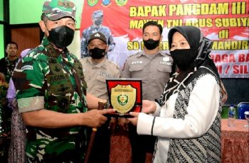 Bandung, jurnalpolisi.id Pangdam III/Slw Mayjen TNI Agus Subiyanto, S.E, M.Si., didampingi Asintel, Asops, Aslog Kasdam III/Slw, Danpomdan dan Kapendam III/Slw, mengunjungi Adik Kelas dan sekaligus memberikan bantuan sosial berupa paket sembako kepada dua Lembaga Pendidikan yaitu SMPN 2 Cimahi dan SD Baros Mandiri 4 Cimahi Jawa Barat, Rabu (24/112021). Setibanya Pangdam III/ Slw beserta rombongan di SMPN 2 Cimahi, disambut tarian adat tradisional khas Sunda, yaitu tari merak dari siswi-siswi SMPN 2 Cimahi. Hadir pada penyambutan Kepala Sekolah, para Guru dan juga turut hadir puluhan satu angkatan dengannya. Dalam kesempatan tersebut, Pangdam menyampaikan terimakasihnya kepada seluruh para guru yang telah mendidiknya, karena menurutnya keberhasilan dirinya hingga sekarang bisa menjadi Pangdam III/Slw bukan semata hasil kerja keras diri sendiri, melainkan juga atas bimbingan Bapak/Ibu guru serta rekan-rekan seangkatan semuanya. “Terimakasih Bapak dan Ibu guru serta rekan-rekan seangkatan yang telah menjadikan saya sebagai Pangdam, semoga kita semua senantiasa diberikan kesehatan,” ungkapnya. Sementara untuk bantuan sosial berupa paket sembako di dua sekolah, Pangdam menyerahkan 600 paket dilakukan secara simbolis baik kepada Gadik dan Gapendik (guru honorer, pegawai, satpam, dan petugas kebersihan) serta orang tua murid yang tidak mampu. Diakhir kunjungannya, Pangdam memberikan cinderamata dan dilanjutkan melihat ruang kelas yang pernah diduduki semasa sekolah baik di SD Mandiri maupun saat di SMPN 2 Cimahi. (Pendam III/Slw).
