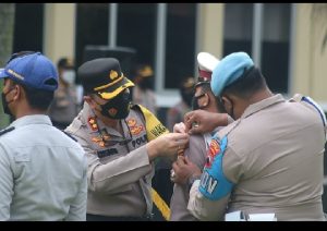 Banyumas – jurnalpolisi.id Senin, (15/11), Polresta Banyumas Polda Jawa Tengah melaksanakan Apel Gelar Pasukan dalam rangka Operasi Zebra Candi 2021. Apel gelar pasukan yang berlangsung di halaman Mapolresta Banyumas tersebut dihadiri oleh PJU Polresta Banyumas, Dan Denpom IV/1 Purwokerto, Kasat Pol PP Kabupaten Banyumas dan diikuti oleh Kompi Pasukan TNI, Polri, Dishub dan Sat Pol PP. Pimpinan apel, Kapolresta Banyumas Kombes Pol M. Firman L. Hakim, S.H., S.I.K., M.Si., melalui Wakapolresta Banyumas AKBP Kristanto Yoga Darmawan, S.I.K., M.Si., membacakan amanat Kapolda Jateng bahwa Operasi Zebra Candi 2021 ini berlangsung selama 14 hari kedepan, yaitu tanggal 15 November 2021 sampai dengan 28 November 2021. AKBP Kristanto Yoga Darmawan, S.I.K., M.Si., menambahkan, dalam kegiatan Operasi Zebra Candi 2021 ini para personel diminta untuk siapkan mental dan fisik dengan dilandasi komitmen moral dan disiplin kerja yang tinggi serta waspada dan jaga keselamatan diri dalam melaksanakan tugas. Bertindak secara tegas namun tetap humanis terhadap setiap pelanggaran hukum lalulintas yang dapat menimbulkan gangguan Kamseltibcatlantas. “Tetap patuhi protokol kesehatan Covid-19, serta jaga kesehatan diri masing masing dalam setiap pelaksanaan tugas”, terangnya. Melalui Operasi Zebra Candi 2021 ini diharapkan sinergitas dan profesionalitas Polri dapat meningkat dalam rangka cipta kondisi kamseltibcarlantas menjelang Natal 2021 dan Tahun Baru 2022 serta meningkatkan disiplin masyarakat dalam berlalu lintas guna menurunkan angka pelanggaran dan kecelakaan lalu lintas serta memutus mata rantai penyebaran Covid-19 di wilayah hukum Polresta Banyumas, tutupnya. ( Arif JPN )