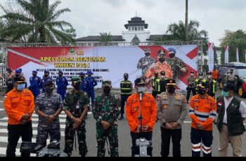 Bandung, jurnalpolisi.id Pangdam III/Slw Mayjen TNI Agus Subiyanto, S.E., M.Si., menghadiri Apel Kesiapsiagaan Bencana Alam tahun 2021 di wilayah Jawa Barat yang digelar Pemerintah Provinsi Jawa Barat bertempat di Halaman Gedung Sate Jalan Diponegoro No. 22 Kota Bandung Jabar. Bertindak selaku pimpinan acara H. Mochamad Ridwan Kamil, S.T., M.U.D. (Gubernur Jabar), turut hadir pada acara tersebut Wakapolda Jabar, Kalak BPBD Provinsi Jabar, dan Kapolrestabes Bandung serta Dandim 0618/Kota Bandung, sementara personel yang terlibat apel kesiapsiagaan TNI 100 orang, POLRI 100 orang, BPBD 40 orang, Damkar 25, Basarnas 25 dan POL PP 6, Jumlah 296 orang. Hal tersebut dituturkan Kapendam III/Slw Kolonel Inf Arie Tri Hedhianto usai mendampingi Pangdam III/Slw pada acara apel kesiapsiagaan bencana di halaman Gedung Sate Jalan Dipenogoro No. 22 Kota Bandung, Jabar Selasa (23/11/2021). Mengutip sebagian sambutan Gubernur Jabar seperti yang disampaikan Kapendam. Di Jawa Barat ada sekitar 5000 Desa Kelurahan, sekitar 19 Desa masuk katagori bencana resiko tinggi dan 3500 sekala bencana sedang, dari bencana itu ada 242 Desa sekala tinggi bencana longsor, mayoritas kebencanaan sampai dengan saat ini ada di Jabar Selatan , mayoritas kebencanaan paling banyak ada di Kabupaten Bogor, “Jadi Wakapolda dan Pangdam dari seluruh wilayah per hari ini catatan Jabar Selatan dan di Jabar selatannya Kabupaten Bogor harus kita berikan atensi yang lebih maksimal,” ajak Gubernur. “Dimana rakyat Jawa Barat kompak di situ kita meraih kemenangan dan keberhasilan, kebencanaan juga sama dimana yang warna-warni ini (TNI, Polri, BPBD, Pol PP, Basarnas, Damkar) kompak, satu komando, satu arahan, saya yakin kebencanaan akan berkurang,” kata Gubernur. Dalam kesempatan itu Pangdam III/Slw memperlihatkan kendaraan dapur umum lapangan canggih, yang sewaktu-waktu siap dioperasionalkan, kendaraan dapur lapangan (Ran Durlap) ini memiliki sumber listrik, LPG dan dapur terintegrasi dalam kendaraan dengan kapasitas sekali masak 500 porsi. Menanggapi hal tersebut, Gubernur Jawa Barat mengapresiasi atas partisipasi Kodam III/Slw yang telah menyiapkan kendaraan dapur lapangan sebagai kesiapan pasokan makanan apabila terjadi bencana sehingga pemenuhan kebutuhan dasar aman terkendali. Adapun tema yang diusung pada apel kesiapsiagaan bencana alam tersebut yaitu, “Melalui Sinergitas Pemerintah Provinsi Jawa Barat, TNI, Polri dan Intansi terkait serta elemen masyarakat siap menghadapi ancaman bencana Hidrometeorologi di Jawa Barat”. (Pendam III/Slw).