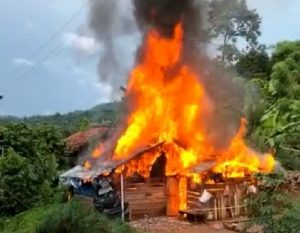 Limau Tanggamus-jurnalpolisi.id Satu Rumah Warga Dusun Seranggi Ludes Terbakar.  Si Jago Merah Kembali Menghabiskan Satu Unit rumah milik warga Dusun Seranggi Pekon Tanjung Jaya Kecamatan Limau Kabupaten Tanggamus ludes terbakar, kemarin sore Senin, 01/11/21. Salah satu Rumah habis di lalap si jago merah dan habis terbakar, rumah tersebut milik salah satu warga Kecamatan limau yang bernama Rohman (60), Nelayan warga setempat. Akibat kebakaran 3 keluarga tersebut mengalami luka bakar dan telah dilakukan penanganan medis. Adapun identitas korban kebakaran tersebut diantaranya Bainuri (54) selaku istri Rohman mengalami luka bakar sekitar 40 persen, cucu korban bernama Maysaroh (15) mengalami luka bakar 70 persen dan seorang Balita bernama Novita Ralita (3) dengan  luka bakar 10 persen. Menurut Kepala Pekon Tanjung Jaya, Sadiwan saat di konfirmasi awak media, 2 korban yakni Bainuri dan Masysaroh masih berada di RSUD Pringsewu guna menjalani perawatan secara intensif,  dan untuk korban balita sudah di ijinkan pulang untuk di rawat jalan. “Ketiga korban sudah di bawa ke RSUD Pringsewu guna perawatan secara intensif, sementara cucu korban yang balita sudah di bawa pulang di rumah kerabatnya untuk rawat jalan.” pungkasnya kepada awak media (2/11/2021) Menurut Kakon, kerugian kebakaran tersebut  seluruh rumah beserta isinya ludes terbakar dan ditaksir sekitar 50 juta rupiah. Dan Iapun berharap sekiranya ada relawan dan donatur yang mengetahui peristiwa ini yang mau berempati meringankan  beban korban dapat menghubungi keluarga atau ke Pak Rohman langsung. “Kerugian sekitar 50 juta rupiah, karena rumah dan isinya ludes terbakar. Saya berharap sekiranya ada relawan atau donatur yang terketuk hati untuk membantu meringankan beban korban dapat menghubungi pak Rohman atau keluarga,” harapnya. Menurut Serma Sumardi, selaku tetangga yang membantu bahwa kebakaran terjadi sekitar pukul 17.00 Wib sore, dirinya mengetahui kebakaran tersebut setelah mendengar teriakan minta tolong dari rumah korban yang kemudian di sambut dengan teriakan istrinya. “Kebakaran terjadi jam 5 sore, saat itu saya dengar teriakan minta tolong dan disambut teriakan istri saya, spontan saya langsung mendatangi rumah korban yang sudah terbakar hebat,” ungkapnya. Ia menambahkan, kebakaran tampak dari  bagian dapur api sudah sangat besar dan dari dalam rumah masih terdengar ada orang, sehingga spontan masuk menolong. “Saya masuk menolong dan mengevakuasi nenek Bainuri bersama cucunya keluar rumah. Saya mengevakuasi saat itu sendiri karena tetangga terdekat satu-satunya ya rumah saya,” tandasnya. Sementara itu, menurut Liskori selaku Tetangga setempat bahwa peristiwa kebakaran tersebut diduga diakibatkan oleh kebocoran kompor gas. (Helmi)