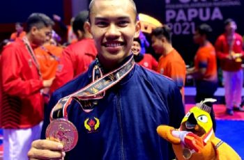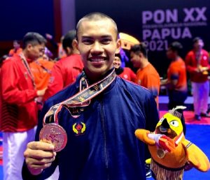 Bandung – jurnalpolisi.id Serda Muhammad Tegar Januar, asal Batalyon Infanteri (Yonif) 320/Badak Putih Pandeglang Kodam III/Slw menjadi salah satu anggota kontingen Provinsi Jawa Barat pada PON XX tahun 2021 di Papua. Pada perhelatan PON XX tersebut Ia berhasil meraih medali emas di kelas kumite beregu putra cabang olahraga karate. Perolehan medali emas ini sekaligus menjadikan penentu kemenangan tim Jabar di kelas tersebut. Hal tersebut dituturkan Kapendam III/Siliwangi Kolonel Inf Arie Tri Hedhianto usai lari pagi di lapangan Makodam III/Siliwangi Jalan Aceh No. 69 Kota Bandung Jawa Barat, Senin (15/11/2021). Menurut pengakuan Serda Muhamad Tegar Januar, sejak kelas VI SD sudah dipaksa orang tuanya yang pensiunan TNI AD berlatih karate, dan diakuinya juga olah raga karate tidak Ia sukai, namun dorongan sang ayah yang begitu kuat, Serda Muhamad Tegar Januar tetap menggeluti olah raga tersebut, dan akhirnya berbuah hasil manis meraih beberapa kejuaraan baik di dalam maupun di luar negeri.