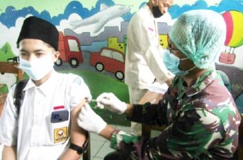 PURBALINGGA – jurnalpolisi.id Dalam rangka mengejar target angka capaian vaksinasi bagi masyarakat di wilayah Kabupaten Purbalingga, Kodim 0702/Purbalingga terus intensifkan serbuan vaksinasi kepada berbagai kelompok masyarakat yang ada. Menurut Lettu Ckm dr Dian Wijayanti selaku Kepala tim vaksinator dari Kodim 0702/Purbalingga, menuturkan jika masyarakat tidak perlu khawatir tidak mendapat vaksinasi karena pihaknya dalam bulan ini masih memiliki stok yang siap untuk didistribusikan, Rabu (17/11/2021). “Kami terus mengejar target capaian vaksinasi di Kabupaten Purbalingga, Stok hari ini (Red: Rabu, 17/11/2021) masih tersedia sebanyak 11.332 dosis jenis Sinovac dan 760 dosis jenis AstraZeneca yang siap didistribusikan,” tuturnya. Disinggung mengenai sasaran vaksinasi, Lettu Ckm dr. Dian menuturkan jika pihaknya melaksanakn sistem jemput bola dalam melayani vaksinasi kepada masyarakat di wilayah Kabupaten Purbalingga. “Kami layani sesuai permintaan kelompok masyarakat dengan sistem jemput bola mendatangi sasaran kelompok masyarakat yang meminta untuk divaksin,” terangnya. Selanjutnya, Sertu Jamaroh sebagai anggota vaksinator Kodim 0702/Purbalingga turut menambahkan jika secara bertahap serbuan vaksinasi Kodim 0702/Purbalingga akan terus digencarkan demi tercapainya target angka capaian vaksinasi di Kabupaten Purbalingga meski berbagai kendala juga turut membatasi. “Kendala yang menonjol terbatasnya vaksinator dari Kodim 0702/Purbalingga sehingga masyarakat diharapkan maklum adanya bila pelayanan belum sesuai harapan masyarakat,” ungkapnya. ( Arif JPN)