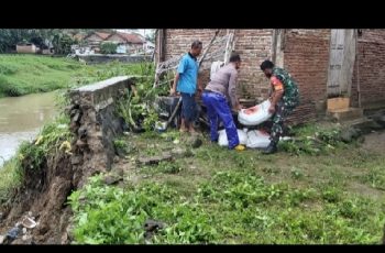 Kebumen – jurnalpolisi.id Hujan lebat disertai angin mengakibatkan beberapa titik di Kebumen mengalami longsor. Salah satunya adalah tanggul Sungai Kedungbener yang terletak di belakang pasar Sruni Kecamatan Alian, Kebumen, tanggul mengalami longsor. Dijelaskan Kapolres Kebumen AKBP Piter Yanottama melalui Kasi Humas Polres Iptu Tugiman, longsor terjadi pada hari Senin (22/11), sekitar pukul 14.00 WIB. Tanggul longsor kurang lebih sepanjang 15 meter dengan ketinggian 3,5 meter. “Polsek Alian sudah mengecek ke lokasi. Longsor terjadi kemarin sore karena hujan. Namun debit air, dari hasil pantauan masih aman,” jelas Iptu Tugiman, Selasa (23/11). Dikhawatirkan terjadi longsor susulan, pagi ini Polsek Alian bersama dengan TNI, BPBD dan warga sekitar bergerak cepat, bekerja bakti membuat tanggul sungai darurat menggunakan karung yang diisi pasir lalu disusun pada tanggul. “Pengerjaan masih berlangsung, namun diusahakan secepat mungkin selesai. Hal ini agar longsor tidak semakin meluas,” terang Kapolsek Alian AKP Mun saat dikonfirmasi. Sungai Kedungbener dalam beberapa catatan, sering meluap dan membuat tanggul jebol yang berdampak banjir. Warga masyarakat diimbau untuk lebih waspada terhadap hal tersebut. Apalagi beberapa hari terakhir ini Kebumen sering diguyur hujan lebat. ( Arif JPN)