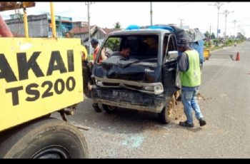 TEBO, jurnalpolisi.id Akibat tak pasangrambu-rambu peringatan, proyek perbaikan jalan di Kabupaten Tebo picu kecelakaan. Peristiwa kejadian kecelakaan ini tepatnya di KM 1 Jalan Lintas Tebo – Bungo, pada Minggu (07/11/2021) sekira pukul 14.00 Wib, kemarin. Korbannya adalah Aprizal, warga Kecamatan Sungai Beduk Desa Mangsang Komplek Bidayu Blok R no 90 Kota Batam, yang saat ini tengah dirawat di RSUD Sultan Thaha Syaifuddin Tebo akibat menabrak alat berat proyek pengerjaan jalan. Saksi kejadian Husaini saat berada di TKP KM 1 di depan Kantor THC Tebo menyebutkan, bahwa dengan kecepatan sedang Pick Up yang dikemudikan korban, mengakami ringsek pada bagian depannnya. ” Bnar korbannya (Sopir-red) tadi langsung dibawa ke rumah sakit, untuk mendapatkan pertolongan medis. “Terang Husaini. Pengerjaan proyek jalan, sebut Husaini, tak ada pasang rambu pemberitahuan sedang ada perbaikan jalan, hal ini diduga menjadi pemicu terjadinya kecelakaan pengguna jalan yang melintas. Ironisnya, saat terjadinya kecelakaan sekitar pukul 14.00 Wib, tidak ada papan peringatan perbaikan jalan, sehingga pengguna jalan tak pelak lagi menabrak alat berat pengerjaan jalan. ” Iyo nian dak ado papan peringatan, kalau soal korban atau Sopir ngantuk ataupun tidak, kita juga tidak tau lah itu. ” Beber Husaini. Panit Lakalantas Polres Tebo Briptu Nanda dikonfirmasi menuturkan, saat ini kejadian sedang dalam penanganan Satlantas Polres Tebo. Korban yang mengemudikan mobil Pickup dengan Nomor Polisi BA 8054 DC, Petugas Sat Lantas melakukan oleh TKP terlebih dahulu, kini sopir Pickup tersebut telah dilarikan ke RSUD untuk penanganan medis secara intensif. ” Sopir mengalami luka-luka ringan,untuk penyelidikan lebih lanjut nantinya gleder pekerjaan proyek tersebut dan pickup akan diamankan ke Unit Lakalantas Polres Tebo, untuk penyelidikan lebih lanjut. ” Tandas Panit Lakalantas Briptu Nanda. (mides)