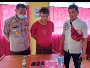 KAMPAR KIRI – jurnalpolisi.id Unit Reskrim Polsek Kampar Kiri tangkap seorang pelaku narkoba di wilayah Sei Jalai Desa Lipat Kain Selatan, pada Rabu siang (03/11/2021). Tersangka kasus penyalahgunaan narkotika yang diamankan Aparat Kepolisian ini adalah AS alias IB (36), warga Bukit Balam Desa Lipat Kain Selatan Kecamatan Kampar Kiri. Dari pelaku ditemukan barang bukti 5 paket narkotika jenis shabu terbungkus plastik bening seberat 2,08 gram, 11 lembar plastik bening, sebuah timbangan digital, beberapa peralatan penggunaan shabu dan sejumlah barang bukti lainnya terkait kasus ini. Pengungkapan kasus ini berawal pada Rabu (03/11/2021) sekira pukul 11.00 Wib, saat itu Personil Unit Reskrim Polsek Kampar Kiri melakukan penyelidikan terkait penyalahgunaan dan peredaran narkoba di wilayah Desa Lipat Kain Selatan. Dari hasil penyelidikan ini tim mengamankan seorang yang dicurigai sebagai pelaku narkoba yaitu AS alias IB, saat dilakukan penggeledahan ditemukan 5 paket narkotika jenis shabu yang disembunyikan dalam kotak rokok merk Sampoerna, petugas juga mengamankan sejumlah barang bukti lainnya terkait kasus ini. Saat diinterogasi, tersangka AS ini mengakui bahwa narkotika tersebut adalah miliknya dan juga mengaku kalau dirinya mengkonsumsi narkotika. Selanjutnya tersangka dan barang bukti dibawa ke Polsek Kampar Kiri untuk menjalani pemeriksaan lebih lanjut. Kapolsek Kampar Kiri Kompol Bambang Sugeng SH, MH didampingi Panit Reskrim IPTU Supriadi SH saat dikonfirmasi membenarkan penangkapan pelaku narkoba ini, disampaikan bahwa dari hasil pengecekan urine tersangka hasilnya positif Methamphetamine. Kini tersangka dan barang bukti telah diamankan di Polsek Kampar Kiri untuk menjalani proses hukum lebih lanjut, pelaku akan dijerat dengan pasal 114 ayat (1) junto pasal 112 ayat (1) Undang-undang RI Nomor 35 tahun 2009 tentang narkotika, dengan ancaman hukuman penjara paling singkat selama 5 tahun, jelasnya. (Anto D)