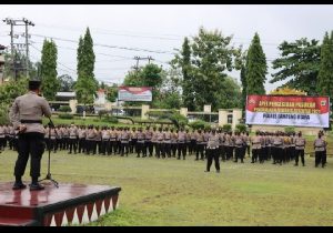 Lampung Utara – jurnalpolisi.id Sebanyak 557 personil gabungan diterjukan Polres Lampung Utara untuk mengamankan Pilkades Serentak 2021 di Kabupaten Lampung Utara, Rabu (08/12/2021). Kapolres Lampung Utara AKBP Kurniawan Ismail, S.H., S.I.K., M.H., mengatakan untuk mengamankan Pilkades 2021 pihaknya menerjukan sebanyak 557 personil yang terdiri dariPolres Lampung Utara 380 personil, BKO Polres Lampung Tengah 53 personil, Polres Waykanan 32 personil dan Brimob 92 personil. “Sebanyak 433 personel akan bertugas untuk mengamankan 141 TPS yang tersebar di 23 kecamatan di kabupaten Lampung Utara” kata Kapolres. Bukan hanya itu, Kapolres juga menuturkan bahwa pihaknya pun sudah menyiapkan cadangan personil sebanyak 124 orang apabila ada hal-hal urgen yang membutuhkan penambahan pasukan. Kapolres Lampung Utara menghimbau agar personil melaksanakan PAM sesuai SOP agar situasi Pilkades kondusif termasuk bersinergi dengan TNI, Satpol PP dan Linmas. Masyarakat juga diingatkan supaya bisa menggunakan hak pilihnya dengan baik dan benar agar kepala desa yang terpilih bisa memberi warna baru pembangunan di desa dan untuk para calon juga dihimbau agar bisa siap menang dan siap kalah. “Mari kita gelorakan semangat demokrasi yang aman, damai, dan sejuk di Lampung Utara, dan jangan lupa karena saat ini masa pandemi covid belum berakhir, mari kita tetap harus menerapkan aturan protokol kesehatan demi keselamatan bersama,” tutupnya. (Ginting JPN)