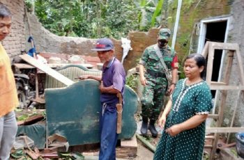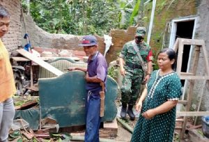 PURBALINGGA – jurnalpolisi.id Angin kencang yang terjadi sekitar pukul 03.45 WIB mengakibatkan salah satu dapur milik warga tertimpa pohon dan mengalami kerusakan cukup parah, Selasa (7/13/2021). Musibah menimpa rumah milik pasangan suami istri, Maman (69) dan Nasimah (62) Warhadi RT 04/RW 01 Desa Karangasem, Kecamatan Kertanegara, Kabupaten Purbalingga. Menurut keterangan Nasimah, saat kejadian dirinya tengah memasak di dapur dan tiba tiba angin bertiup cukup kencang.Tak lama kemudian ia juga mendengar pohon samping rumahnya roboh dan menimpa atap bagian dapur miliknya. ”Saat angin kencang, tiba-tiba pohon gowok yang berada dekat dapur kami roboh dan menimpa atap dapur,” katanya. Mendapati laporan musibah yang menimpa warganya, Babinsa Koramil 12/Karanganyar Serda Sugianto langsung turun menuju ke lokasi tempat kejadian bersama dengan pemerintah desa serta langsung melakukan pengecekan atas kejadian musibah tersebut. “Beruntung korban jiwa nihil namun bangunan milik korban mengalami kerusakan, kerugian materiil ditaksir senilai Rp 4 juta,” terang Babinsa. Untuk mengantisipasi terjadinya hal-hal yang tidak diinginkan, Serda Sugianto turut mengimbau warganya untuk tetap waspada dan berhati-hati, karena sekarang musim hujan terkadang disertai angin kencang. “Musim Hujan dan sering disertai angin kencang, masyarakat diharap waspada menyikapi,” pesannya mengingatkan. Selanjutnya untuk menindaklanjuti hal tersebut, bersama warga sekitar, Babinsa dan aparat pemerintah desa setempat segera bergotong-royong membersihkan puing-puing bangunan, kemudian melakukan upaya perbaikan sementara. (Pewarta : Arif JPN)