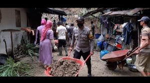 Kebumen – jurnalpolisi.id Hujan lebat yang mengguyur Kecamatan Ayah, Kabupaten Kebumen, membuat longsor di Desa Argopeni. Dari peristiwa itu, dapur rumah milik Wawan Iswanto (43) dilaporkan terkena longsoran tanah. Meski tak ada korban jiwa, dapur milik Iswanto nyaris ambruk. Dijelaskan Kapolres Kebumen AKBP Piter Yanottama melalui Kasi Humas Polres Iptu Tugiman, longsor terjadi pada hari Minggu (19/12) sekitar pukul 21.00 WIB saat hujan lebat. “Kita sudah mendapatkan laporan ada longsor di Ayah. Hari ini Bhabinkamtibmas bersama dengan warga melakukan kerja bakti membersihkan material longsoran tanah,” jelas Iptu Tugiman, Senin (20/12). Kepada warga masyarakat Iptu Tugiman berpesan untuk lebih meningkatkan kewaspadaan bencana alam. Apalagi jika dilihat secara topografi, Kebumen termasuk rawan bencana alam banjir, longsor, tsunami serta banjir bandang. Sampai saat ini, Polres Kebumen masih standby antisipasi bencana alam yang mungkin bisa terjadi kapan saja. (Arif JPN)