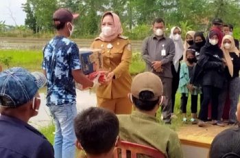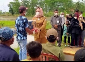 Tulang Bawang – jurnalpolisi.id Pemerintah Kabupaten Tulang bawang Badan Penanggulangan Bencana Daerah (BPBD) Kabupaten Tulang Bawang, secara cepat menyalurkan bantuan logistik kepada korban terdampak bencana angin puting beliung di Kecamatan Menggala Timur, kampung Kibang Pacing. Bantuan tersebut di berikan langsung oleh Bupati Tulang Bawang Drs Hj Winarti SH MH kepada warga yang terdampak Angin Puting beliung Bantuan yang diberikan berupa sembako dan uang secara Simbolis di salah satu rumah warga yang terdampak Angin Puting Beliung Senin ( 06.Desember.2021). Musibah alam yang mengakibatkan 25 rumah warga rusak akibat di terjang angin puting beliung pada Kamis (25/11) sekitar pukul 18:30 dan selepas isya, Dalam sambutanya Winarti Bupati Tulang bawang menyampaikan bantuan ini merupakan rasa simpati dan kepedulian pemerintah Kabupaten Tulang Bawang terhadap musibah yang menimpa warga didusun 4 Kampung Kibang Pacing akibat bencana alam angin puting beliung beberapa hari yang lalu. Sebagai wujud kepedulian pemerintah terhadap masyarakat yang tertimpa musibah bencana alam angin puting beliung “ibu Bupati Hj Winarti memberikan Bantuan sembako dan uang secara simbolis kepada 25 warga dusun 4 kampung Kibang Pacing Kecamatan Menggala Timur demi meringankan beban korban bencana alam angin puting beliung yang telah mengobrak abrik rumah warga. Kepada masyarakat korban bencana puting beliung, agar tetap tabah dan sabar atas musibah yang menimpa warga dusun 4 kampung kibang pacing kecamatan menggala timur. Di balik musibah dan cobaan ini pasti ada hikmahnya.”jelas nya. Bencana alam bisa datang kapan saja, tidak bisa diprediksi. Oleh karenanya, kita harus tetap waspada. Terkhusus bencana alam Pandemi Covid19 yang tengah melanda negeri ini untuk itu Kita semua harus waspada dan tetap taat menjalankan prokes demi keselamatan kita semua.” Imbuhnya Diketahui sebelumnya, setelah Tim BPBD mendapat informasi terjadinya bencana angin puting beliung, langsung turun ke lapangan dan melakukan pendataan warga yang terdampak bencana tersebut. Dalam acara tersebut ikut dihadiri, Bupati Tulang Bawang, Kepala BKPP,Kadis PPPA, Kadis Perikanan,Kadis Sosial, Kabag SDA,Kabag Organisasi, Sekertaris BPBD,Sekertaris Balitbang, Sekertaris Pasar,Sekertaris Kominfo, Sekertaris Pemukiman, Camat dan aparatur kampung. (Ari JPN Perwakilan Lampung)