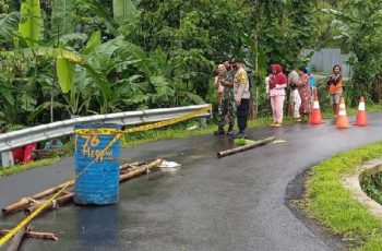 Purbalingga – jurnalpolisi.id Jalan Desa Wirasaba, Kecamatan Bukateja ambles akibat talud ambrol tergerus air luapan Sungai Serayu. Karena membahayakan, untuk mencegah jalan dilewati kendaraan polisi dari Polsek Bukateja memasang tanda peringatan di lokasi tersebut, Kamis (23/12/2021) pagi. Dari pantauan jalan ambles memiliki panjang kurang lebih 12 meter. Dengan kedalaman sekitar tujuh meter. Jalan tersebut merupakan penghubung dua dusun di Desa Wirasaba. Kapolsek Bukateja Iptu Wartono mengatakan peristiwa jalan ambles terjadi pada Rabu (22/12/2021) malam sekira jam 23.30 WIB. Penyebabnya akibat hujan deras yang menyebabkan Sungai Serayu meluap. Sehingga talud jalan tergerus air dan ambles karena posisi jalan dekat dengan sungai. “Tidak ada korban jiwa akibat kejadian tersebut namun kendaraan tidak bisa dilalui dan berpotensi menimbulkan bahaya bagi pengendara,” jelasnya. Kapolsek menjelaskan untuk mencegah warga nekat melintas, di lokasi tersebut dipasang tanda peringatan. Selain memasang traffic cone dipasang juga garis polisi. Harapannya warga tidak melintas di jalur tersebut sampai ada perbaikan. “Kami pasang Traffic Cone dan garis polisi di lokasi jalan ambles. Masyarakat bisa menggunakan jalan alternatif yang bisa digunakan untuk menghubungkan dua dusun tersebut,” katanya. Kapolsek menambahkan pihaknya sudah berkoordinasi dengan pemerintahan desa dan kecamatan. Selain itu meneruskan informasi kepada dinas terkait agar bisa segera dilakukan perbaikan. (Sambudi JPN)