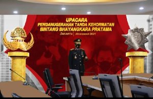 Batam – jurnalpolisi.id Jelang penghujung tahun 2021, Kapolda Kepri Irjen Pol. Dr. Aris Budiman,M.Si, mendapat penganugerahan tanda kehormatan Bintang Bhayangkara dari Presiden RI Ir. H. Joko Widodo secara virtual pada hari Kamis (30/12/2021). “Rekan-rekan yang mendapatkan Penganugerahan Tanda Kehormatan Bintang Bhayangkara Pratama dari Presiden Republik Indonesia Ir.H. Joko Widodo Sebanyak 61 Perwira Tinggi Polri, 8 Perwira tinggi TNI, Dan 5 dari Asn Polri.” ucap Kapolri Jenderal Polisi Drs. Listyo Sigit Prabowo, M.Si. “Serta saya mengucapkan Aspresiasi dan terima kasih kepada rekan-rekan dari TNI yang telah mendukung operasionl Polri, dan kepada rekan-rekan ASN Polri yang juga telah memberikan dukungan dan kontribusi terhadap transformasi polri di bidang pelayanan publik serta organisasi polri agar menjadi lebih baik lagi. Polri terus meningkatkan pelayanan publik untuk mewujudkan Polri yang Presisi.” tutur Kapolri Jenderal Polisi Drs. Listyo Sigit Prabowo, M.Si. Kapolri Jenderal Polisi Drs. Listyo Sigit Prabowo, M.Si menjelaskan bahwasanya Polri selalu memegang teguh amanah tentang perubahan organisasi di institusi polri dan pelayanan publik apa yang telah menjadi perintah dari presiden RI Serta semoga pertumbuhan ekonomi kita segera normal serta stabilitas masyarakat dapat berjalan dengan baik. Bintang Bhayangkara Pratama merupakan tanda kehormatan yang diberikan kepada personel Polri dan non Polri yang berjasa dalam memajukan Polri. Calon penerima harus melalui proses screening track record , penganugerahan ini tentu saja memiliki konsekuensi bagi penerima untuk terus mendorong perubahan dan transformasi organisasi yang lebih baik ke depan.” jelas Kapolri Jenderal Polisi Drs. Listyo Sigit Prabowo, M.Si. Jadilah contoh teladan untuk membawa nama baik institusi polri, berikan reward kepada anggota yang berprestasi, untuk anggota yang melakukan pelanggaran beri tindakan tegas. Dengan harapan kita dapat memberikan pelayanan terbaik bagi masyarakat, bangsa dan negara.- tutup Kapolri Jenderal Polisi Drs. Listyo Sigit Prabowo, M.Si. (Hms/Sahril)