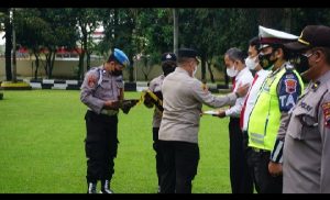 Banyumas – jurnalpolisi.id Senin (6/12), Kapolresta Banyumas Kombes Pol M. Firman L. Hakim, S.H, S.I.K., M.Si., memimpin apel pagi di halaman Mapolresta Banyumas. Apel pagi ini diikuti oleh Wakapolresta Banyumas AKBP Kristanto Yoga Darmawan, S I.K., M.Si., PJU, perwakilan Bahbinkamtibmas Polsek Jajaran, personel Polresta Banyumas serta PNS. Kapolresta Banyumas dalam kesempatan tersebut juga memberikan reward (penghargaan) kepada para personel yang berprestasi diantaranya juara 1 beregu lomba menembak dalam rangka HUT Korps Brimob ke 75 tahun 2021 dan pelaksanaan vaksinasi mobile. “Saya minta tidak cukup hanya sampai disini. Silahkan rekan rekan berprestasi, berprestasi yang baik. Masih ada kegiatan lain yang dapat kita lakukan dengan memberikan pelayanan kepada masyarakat yang dapat menjadikan prestasi kita semua. Kita tunjukan kepada masyarakat bahwa kita ini memberikan pelayanan terbaik kepada masyarakat”, tutur Kapolresta Banyumas dalam arahannya kepada peserta apel. ( Arif JPN )