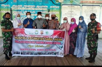 Aceh Timur – jurnalpolisi.id Kapolsek Darul Ikhsan Ipda Alizar mendampingi Bupati Aceh Timur H. Hasballah bin HM. Thaib, S.H. meninjau pelaksanaan vaksinasi di Dayah Al-Huda, Desa Seunebok Teungoh, Kecamatan Darul Ikhsan, Sabtu, (25/12/2021) pagi. Dayah Al-Huda terdiri dari 150 santriwan dan santriwati, 60 diantaranya sudah divaksin terlebih dahulu dan untuk hari ini 90 santri yang lain akan divaksin, sehingga santri di Dayah Al-Huda sudah 100 % divaksin. Bupati Aceh Timur Bupati mengucapkan terimakasih atas kerjasama yang dibangun Forkopimcam Kecamatan Darul Ikhsan dengan antara pengasuh dayah sehingga seluruh santri di Dayah Al-Huda sudah divaksin. Menurut Bupati yang akrab dipanggil Rocky ini mengatakan, vaksin adalah kegiatan yang mulia untuk dilakukan bersama guna untuk memulihkan ke adaan semula yang lebih baik dalam ihtiar melawan Covid-19. “Sekali lagi kami mengucapkan terimakasih dan saya minta kepada dayah-dayah yang ada di Aceh Timur untuk menggelar kegiatan vaksin,” tegas Bupati. Ia optimis capaian vaksinasi diakhir 2021 tercapai. Apalagi, adanya dukungan Polres Aceh Timur dan jajarannya dalam percepatan vaksinasi. “Alhamdulillah, kita dibantu Polres Aceh Timur dalam percepatan dan mobilisasi vaksisasi, kita juga melibatkan tokoh agama, tokoh masyarakat, Bhabinkamtibmas dan Babinsa.” Pungkas Bupati Aceh Timur H. Hasballah bin HM Thaib, S.H. Sumber:Sihumas Polres Aceh Timur
