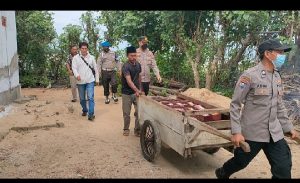 Sampang – jurnalpolisi.id Bencana angin puting beliung melanda pemukiman masyarakat di Dusun Lebak Desa Sokobanah Daya Kecamatan Sokobanah, pada Kamis (30/12/2021). Oleh karena itu pada Jum’at (31/12/2021) pukul 09.00 Wib, Kapolsek Sokobanah AKP Agung Joko Haryono S.IK, MH, M.Si beserta anggotanya mendatangi dusun tersebut untuk menyambangi lokasi tersebut sekaligus memberikan bantuan kepada masyarakat yang mengalami musibah angin puting beliung. Dengan di dampingi Pj. Kades Sokobanah (Parhan) dan personil Polsek Sokobanah, AKP Agung Joko Haryono mendatangi satu persatu warga masyarakat yang menjadi korban bencana alam puting beliung untuk memberikan bantuan berupa bingkisan sembako. Kapolsek Sokobanah mengatakan kepada awak media bahwa kegiatan pemberian bantuan sosial berupa 14 paket sembako merupakan wujud kepedulian Polri khususnya Polsek Sokobanah dalam meringankan beban warga masyarakat yang terdampak bencana alam angin puting beliung. “Kegiatan bantuan sosial ini merupakan wujud kepedulian Polri dalam meringankan beban warga masyarakat yang terdampak bencana angin puting beliung. Semoga bantuan sosial yang kami berikan bisa meringankan beban masyarakat” ujar Kapolsek Sokobanah AKP Agung Joko Haryono S.IK, MH, M.Si. AKP Agung Joko Haryono S.IK, MH, M.Si juga mengatakan alasan pemberian bingkisan sembako di berikan pada hari ini karena kemarin anggota Polsek Sokobanah fokus pada kegiatan kerja bhakti bersama masyarakat membersihkan puing-puing dan membantu masyarakat memperbaiki bangunan yang rusak akibat bencana puting beliung. Kapolsek Sokobanah juga mengingatkan masyarakat di Dusun Lebak Desa Sokobanah Daya Kecamatan Sokobanah untuk selalu waspada dan antisipasi sedini mungkin akan cuaca ekstrem yang bisa menyebabkan bencana alam dikemudian hari. “Saya menghimbau kepada seluruh masyarakat agar meningkatkan kewaspadaan terhadap perubahan cuaca yang ekstrem selama musim penghujan. Saya juga berharap semoga bencana alam tidak terjadi kembali di wilayah Kecamatan Sokobanah” pungkas Kapolsek Sokobanah AKP Agung Joko Haryono S.IK, MH, M.Si. (Djumadi)