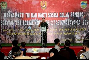 Tasikmalaya, jurnalpolisi.id Salah satu program pembinaan teritorial kemanunggalan TNI dan Rakyat dalam rangka mewujudkan ketahanan nasional dan kesejahteraan masyarakat, adalah Karya Bakti TNI dan Bakti Sosial. Menyikapi hal itu, Kodam III/Siliwangi wujudkan impian warga masyarakat Desa Burujul Jaya Kecamatan Parungponteng, Kabupaten Tasikmalaya, Jawa Barat melalui kegiatan Karya Bakti TNI dan Bakti Sosial. Kegiatan tersebut dilaksanakan oleh prajurit jajaran Kodam III/Slw dimulai sejak 17 November hingga 7 Desember 2021, kemarin dan telah menyelesaikan Pembukaan dan Pengerasan Jalan sepanjang 1.300 M x 2,5 M, Rehab Rutilahu sebanyak 5 unit, Rehab Masjid 1 unit serta Rehab Sekolah 1 unit. Hal itu dibenarkan Kapendam III/Slw Kolonel Inf Arie Tri Hedhianto, saat ditemui di ruang kerja Kapendam III/Slw Jalan Aceh No. 69 Kota Bandung Jawa Barat, Kamis (9/12/2021). Lanjutnya mengatakan, kegiatan itu telah selesai dan sudah resmi ditutup Bapak Kasdam III/Slw Brigjen TNI Darmono Susastro. Kegiatan penutupan dilaksanakan di halaman Desa Burujul Jaya, Selasa kemarin, ujar Kapendam. Hadir pada acara tersebut, Kasiter Korem 062/TN, Dandim 0612/Tsm, Wakil Bupati dan unsur Forkompimda Kabupaten Tasikmalaya, Camat Parungponteng, Tokoh Masyarakat, Tokoh Agama, Tokoh Adat serta pejabat lainnya. Kapendam pun menyampaikan, dalam membangun suatu wilayah adalah suatu kewajiban kita bersama dan kita bisa melihat hasil dari pelaksanaan Karya Bakti di Desa Burujul Jaya baik hasil pembukaan dan pengerasan jalan, Rehab Rutilahu, Rehab Masjid, serta Rehab Sekolah. “Keberhasilan ini, karena warga masyarakat pada saat pengerjaan bisa bekerjasama dan kami berharap gunakan sebagaimana mestinya untuk dijaga dan dirawat agar lebih lama masa pakainya,” pesannya. Disamping melaksanakan karya bakti, Kodam III/Slw juga melaksanakan bakti sosial dengan memberikan sembako kepada masyarakat yang saat itu sedang melaksanakan vaksinasi, diberikan kepada masyarakat sebanyak 500 orang. Ditempat berbeda, Wakil Bupati Tasikmalaya Cecep Nurul Yakin menyampaikan terima kasih dan rasa bangganya karena keberhasilan yang telah dicapai. Selain itu, dirinya berharap terjalin kerja sama yang sudah baik semakin ditingkatkan kembali khususunya di wilayah Kabupaten Tasikmalaya. “Pemerintah daerah memiliki harapan, terhadap peningkatan jalinan kerja sama antara seluruh instansi, baik TNI, Polri maupun sipil di wilayah Tasikmalaya, dalam kontek peningkatan kesejehteraan masyarakat pada aspek seluruh kehidupan,” harap Wakil Bupati Tasikmalaya. (Pendam III/Siliwangi)