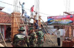 Kebumen – jurnalpolisi.id Kodim 0709/Kebumen melaksanakan kegiatan karya bakti TNI dalam rangka hari infanteri tahun 2021 dengan tema “Infanteri yang solid Visioner dan Profesional ” bertempat di kelurahan Panjer Kebumen, Sabtu (18/12/21). Komandan Kodim (Dandim) 0709/Kebumen Letkol Inf Eduar Hendri S. I. P., menjelaskan Kodim 0709/Kebumen menggelar karya bakti melaksanakan pengecoran tihang utama pembangunan Masjid Babussalam di kelurahan Panjer RT 02/03 Kebumen. Karya bakti merupakan wujud nyata pengabdian TNI kepada masyarakat baik dibidang sosial maupun pembangunan. Hal itu ditempuh sebagai upaya untuk meningkatkan kemanunggalan TNI dengan rakyat sehingga semakin kokoh dan solid, ungkapnya. Dandim juga mengapresiasi atas pihak-pihak yang turut hadir membantu karya bakti pembangunan masjid Babussalam. Hadir dalam kegiatan tersebut Dandim 0709/Kebumen Letkol Inf Eduar Hendri S.I.P., Pasiter Kodim 0709/Kbm Kapten Inf Ali kuntara ,Danramil 02/Gombong Inf Nowo K., Danramil 15/Klirong Kapten Inf Kartono, Danramil 01/Kbm Kapten inf Catur W. serta Tokoh Masyarakat di lingkungan RT 03/02 panjer, Kebumen. Masjid yang berukuran 15 x 15 m itu merupakan tanah wakaf dari :1. Bpk Dini alm2. Bpk Kusen alm3. Bpk Kusnan alm4. Bpk Supardi bandung5. Bpk Subektu alm6. Bpk Johari alm Pengerjaan mulai 15 November 2021 dengan target selesai 11 bulan. (Pewarta : Arif JPN)