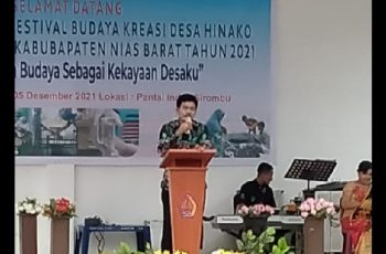 Dan pada kesempatan ini juga Kepala dinas Pariwisata April Imelda J.Has S.Pd. M.Si Menyambut baik pergelaran Festival budaya Kreasi Desa Hinako Kecamatan Sirombu, agar kedepannya makin sukses dan semakin maju. Pada kesempatan yg sama, Bapak Bupati Nias Barat Waruwu sempat menyampaikan beberapa hal, salah satunya gaji GKD pada tahun 2022 nanti, pemerintah kabupaten Nias Barat akan memperhatikan dan menambah gaji GKD di seluruh kabupaten Nias Barat” Imbuhnya’ Dan beliau juga berjanji,di tahun 2022 mendatang, pemerintah kabupaten Nias Barat Hasambua berjanji.,bila seandainya ada warga Nias Barat yg meninggal dunia, Pemda Nias Barat akan memberikan bantuan secara tunai senilai Rp 1.500.000. Pada pergelaran Festival budaya Kreasi Desa Hinako Kecamatan Sirombu ini.,tokoh masyarakat Desa Hinako, menampilkan Budaya Kreasi Desa Hinako dalam tari tradisional ” Folaya Saembu,tari Moyo,dan pencak silat yg begitu baik. ( Obalazi Zai/Aturan Gulo)