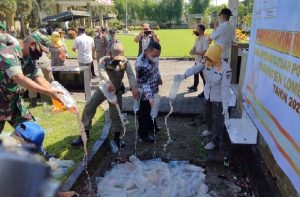 Girimenang (NTB) – jurnalpolisi.id Pol PP Lombok Barat melakukan pemusnahan ratusan botol barang bukti minuman beralkohol hasil kegiatan Yustisi tahun 2021 di halaman kantor Pol PP Lobar (16-12-2021) Baiq Yeni Satriani Ekawati S.Sos Kasat Pol PP Lobar  mengatakan kegiatan pemusnahan barang bukti ini merupakan kegiatan lanjutan dari operasi penertiban yang dilakukan baik secara gabungan dengan Polri dan TNI serta instansi terkait maupun secara mandiri oleh Sat Pol PP secara internal. Sehingga keberadaan barang bukti berupa minuman beralkohol itu bisa dipertanggungjawabkan secara legal. Ujarnya Lanjut, Baiq Yeni kegiatan operasi penertiban dilakukan di semua  Kecamatan di Kab Lombok Barat. Namun barang bukti yang bisa kami dapatkanhanya di 3 Kecamatan yakni Kec. Lingsar, Kec. Narmada dan Kec. Gunung Sari. “Adapun barang bukti yang dimusnahkan yakni 11 jerigen dan 462 botol jenis minuman Tuaq, 16 Botol jenisi Brem dan 41 botol Bir. Dan kita musnahkan dengan cara menumpahkan dan atau memecahkan botol kemasannya, Baiq Yeni juga menyampaikan ucapan terimakasih kepada semua pihak yang telah mendukung dalam operasi Yustisi dan pemusnahan barang Bukti. Semoga kedepannya sinergitas yang sudah terjalin dengan baik ini terus dipertahankan dan ditingkatkan, karena kami tidak bisa bekerja sendiri tanpa dukungan dari semua pihak. Kami sangat mengharapkan saran, masukan, dukungan, dan informasi dari para pihak sehingga amanat Perda No. 1 tahun 2015 tentang Pengawasan, pengendalian, dan penjualan minuman beralkohol dapat kita dilaksanakan dengan maksimal.  (Mst)