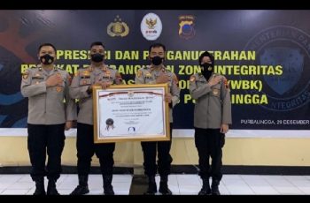 Purbalingga – jurnalpolisi.id Polres Purbalingga berhasil meraih predikat Wilayah Bebas dari Korupsi (WBK) yang diberikan oleh Kementerian Pendayagunaan Aparatur Negara dan Reformasi Birokasi (Kemenpan RB). Pemberian penghargaan dilaksanakan secara virtual melalui zoom meeting di Aula Loka Anindhita Mapolres Purbalingga, Senin (20/12/2021). Kapolres Purbalingga AKBP Era Johny Kurniawan mengatakan hari ini Polres Purbalingga menjadi salah satu penerima penghargaan Wilayah Bebas dari Korupsi. Secara pribadi saya merasa bangga atas kinerja dari rekan-rekan sekalian, karena tidak mudah untuk mendapatkan penghargaan ini. Disampaikan bahwa Polres Purbalingga telah berkomitmen mencanangkan zona integritas melalui enam area perubahan sejak tahun 2018 yang lalu. Setelah melalui berbagai tahap penilaian, pada akhirnya tahun ini bisa mendapatkan predikat WBK. “Setelah dua tahun perjuangan rekan-rekan sekalian Polres Purbalingga akhirnya mendapatkan predikat WBK,” kata kapolres. Kapolres menjelaskan bahwa predikat WBK ini merupakan awal langkah Polres Purbalingga untuk lebih maju. Karena ada satu target lagi yang harus dicapai yaitu predikat WBBM (Wilayah Birokrasi Bersih dan Melayani). “Semoga ini menjadi semangat bagi seluruh personel Polres Purbalingga untuk selalu maju dan meningkatkan pelayanan kepada masyarakat,” ucap kapolres. Kapolres menambahkan dalam memberikan pelayanan kepada masyarakat sejumlah inovasi pelayanan telah dilakukan Polres Purbalingga. Inovasi pelayanan diantaranya Suket Cakep Braling, Randumas Braling, Ideps, SIM Delivery dan Wayang Lalu Lintas. “Kami terus berupaya meningkatkan pelayanan kepada masyarakat. Program boleh bagus tetapi tidak akan baik kalau tidak dilanjutkan pelaksanaannya,” ucapnya. ( Arif JPN)