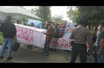 LANGKAT – Jurnal polisi.id Ratusan masyarakat dari Desa Besilam Bukit Lembasa Kecamatan Wampu Kabupaten Langkat Sumatera Utara yang mengenderai sejumlah mobil pribadi dan truk menggelar aksi unjukrasa damai minta keadilan kepada pihak penegak hukum Kejaksaan Negeri Langkat, Kamis (23/12/2021) yang dikawal oleh Polres Langkat.Setelah berorasi dibelakang kantor Polres Langkat 15 orang perwakilan pengunjukrasa menuju ke kantor Kejari Langkat yang mengusung kerada berwarna putih bertulisan “ Tegakkan Keadilan Tangkap May Hendra PA” .Dalam orasinya kalau tuntutan mereka tidak dikabulkan mengancam akan bermalam di Kantor Kejaksaan Langkat.