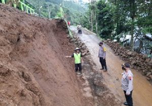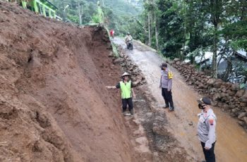 Purbalingga – jurnalpolisi.id Talud bangunan MI Ma’arif NU 02 Desa Jingkang, Kecamatan Karangjambu, Kabupaten PurbaIingga mengalami longsor. Akibatnya bangunan tembok keliling di sekolah tersebut ikut ambruk. Kapolsek Karangreja Iptu Catur Subagyo saat dikonfirmasi, Selasa (7/12/2021) mengatakan bahwa peristiwa talud madrasah longsor terjadi Senin (6/12/2021) sekira jam 22.00 WIB. Namun peristiwa tersebut baru dilaporkan ke polsek pada siang hari ini. “Mendapatkan laporan kejadian tersebut kami langsung mendatangi lokasi untuk melakukan pengecekan,” jelasnya. Dijelaskan bahwa kejadian talud longsor diketahui pertama kali oleh warga setempat bernama Bunyamin (70). Saat kejadian hujan deras mengguyur wilayah tersebut sejak siang hingga malam. “Tidak ada korban jiwa akibat kejadian tersebut. Namun kerugian ditaksir mencapai Rp. 10 juta,” jelasnya. Kapolsek menambahkan akibat talud longsor menyebabkan jalan penghubung antar dusun sempat tertutup material longsor.Namun sudah dilakukan upaya pembersihan agar tidak menggangu. Kapolsek mengimbau masyarakat untuk waspada tanah longsor. Mengingat saat ini hujan deras sering mengguyur wilayah Kecamatan Karangreja dan Kecamatan Karangjambu. Terlebih di dua wilayah tersebut struktur tanahnya labil sehingga berpotensi menimbulkan tanah longsor. (Sambudi JPN)