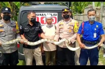 Pati – jurnalpolisi.id 13 Desember 2021, Kanit SPKT (Sentra Pelayanan Kepolisian Terpadu) bersama dengan Perwira siaga,banit SPKT dan AIPTU Mulyo mengamankan seekor ular Phiton jenis sanca batik, dengan ukuran panjang ±3 meter, diameter 18 cm di desa Sidokerto. Kemudian ular tersebut dibawa Ke Polres Pati untuk selanjutnya diserahkan kepada BKSDA (Balai Konservasi Sumber Daya Alam) Pati. Temuan tersebut berawal dari laporan warga, Endang Rahayuningsih (60 th), dukuh Kunden desa Sidokerto Kecamatan Pati Kabupaten Pati yang melaporkan gangguan adanya ular Phiton yang masuk dan memakan ayam miliknya. Tindakan petugas kepolisian langsung mendatangi TKP dan sigap menangkap ular tersebut. (Mury)