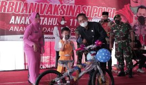 Vaksinasi Anak Polres Klaten Dihibur Badut dan Berhadiah Sepeda