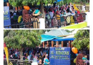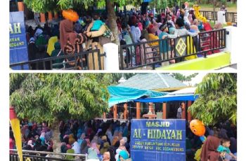 LANGKAT – urnalpolisi.id Beragam cara masyarakat Banjar Kalimantan yang saat ini kelahiran ditanah bertuah negeri beradab bumi Melayu Langkat Berseri sudah berdomisili di Desa Karang Anyar Kecamatan Secanggang Kabupaten Langkat Sumatera Utara dalam merayakan peringatan maulid Nabi Muhammad SAW pada 12 Rabi’ul Awal 1443 Hijriah, dilaksanakan Minggu 05 Desember 2021 dimasjid Al Hidayah Desa Karang Anyar Sebagai contoh warga Banjar Kalimantan mengupayakan menggelar acara silaturahmi kaum banjar yang diikuti seribu warga Banjar terdiri dari anak-anak dan orang dewasa, dengan diiringi lantunan syair-syair maulid yang berisikan pujian serta riwayat kehidupan nabi penutup/akhir zaman tersebut. Menyambut kelahiran atau maulid Nabi Muhammad SAW tiap 12 Rabiul Awal, umat Islam khususnya kaum banjar Kalimantan di Langkat memiliki tradisi unik, yaitu makan batalam dan berindang sebelum dimulainya acara istighosah para tamu kaum banjar yang berdatangan dari kabupaten kota di Sumatera Utara disambut dengan sarapan pagi dengan lontong sate kambing dan masyarakat kaum banjar duduk bersama dirumah rumah yang sudah disiapkan oleh panitia pelaksana 1 rumah menampung 80 orang dan ada 35 rumah. Setelah selesai sarapan bersama para tetua kaum banjar yang dirumah rumah warga desa karang Anyar menyampaikan pesan nasehat buat warga Banjar adapun pesan tersebut diakhir tahun 2021 mari kita rapatkan barisan bersatu dalam kekuatan bersama untuk memulai kehidupan baru di tahun 2022 dan berdoa bersama semoga negeri Indonesia tercinta ini dijauhkan dari marabahaya malapetaka dan musibah penyebaran virus covid-19 berakhir diakhir tahun ini 2021, jangan ada provokasi jahat yang mencoba menggiring isu-isu negatif merusak dan memecah persatuan dan kesatuan bangsa. Setelah selesai kurang lebih 1 jam sarapan dan mendengarkan nasehat para tetua sepuh kaum banjar mengajar mengajak seluruh undangan dan masyarakat bergerak kemasjid untuk mendengarkan ceramah agama dalam kegiatan dzikir dan istighosah yang disampaikan oleh Al Usthadz Ibnu Djarot,S.Pd.I Sesampainya di masjid dengan berbondong bondong kaum banjar dan masyarakat desa karang Anyer ikutserta menghadiri undangan istighosah Akbar. Kegiatan ini dilaksanakan setiap akhir tahun dibulan Desember dan ajang silaturahmi bersama kaum banjar saling mengenal satu sama lain menguatkan barisan dan pandangan agar tidak terpengaruh dengan isu-isu yang berkembang saat ini yang disampaikan kata sambutan dari Kades Karang Anyar. Al Usthadz Ibnu Djarot menyampaikan bahwa saat ini Islam merupakan ajang untuk mendapatkan hal dan tujuan yang mengatasnamakan agama dan mencoba mengarahkan pandangan politik untuk menghancurkan persahabatan dan persaudaraan sesama muslim dan mengadu domba antar umat beragama maka penceramah mengharapkan jangan terpancing isu miring dan menerima kabar yang belum jelas asal usulnya. Mari berdoa untuk negeri semoga Indonesia dalam lindungan Allah SWT Tuhan Yang Maha Esa dan khususnya para pemimpin Negeri, ulama, ummaro Kabupaten Langkat Sumatera Utara senantiasa kuat diberi kan kesehatan dan keselamatan Amin Ya Rabbal Alamin. Kegiatan Istighosah Akbar Maulid Nabi Muhammad SAW di Masjid Al Hidayah Desa Karang Anyer Kecamatan Secanggang ini dihadiri oleh beberapa organisasi kemasyarakatan diantaranya Ketua PC ISNU Kabupaten Langkat Buya Dhev dan Teman Seperjuangan Kaum Nahdliyyin Langkat, Ketua DPC HKTI Kabupaten Langkat AKBP.Purn.Dr.H.Ahmad Zaini,SH,MH, Ketua PC IPNU Kabupaten Langkat Imran Lubis,S.Sos.I, Tokoh Pujakesuma Kabupaten Langkat Kang Mas Somiran Noel, serta hadir bersama Pengurus Pemuda Pancasila, FKPPI, BKPRMI, Ibu-ibu Pengajian Yakni Al Hidayah, Mushlimat NU, dan Beberapa Remaja Masjid Mushola Desa Karang Anyer serta segenap unsur pemerintahan desa karang Anyer, Persatuan Perwiritan Syarikat Yasin dan STM kaum laki-laki dan perempuan Desa Karang Anyar.(Sahrul)