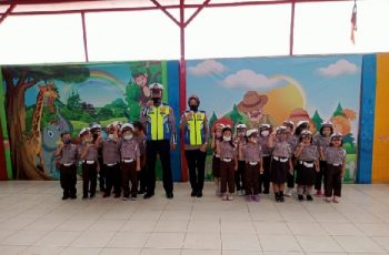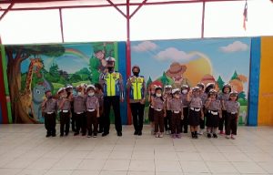 Madina – jurnalpolisi.id Kapolres Madina AKBP H.M. Reza Chairul, A.S, S.I.K, S.H, M.H melalui personil satuan lalu lintas Polres Madina dibawah pimpinan AKP Syamsul Arifin Batubara, S.E, M.Si Melaksanakan Kegiatan “Polisi Sahabat Anak” di Paud Kemala Bhayangkari 14 Panyabungan, Rabu (19/01/2022) sekitar pukul 09.00 WIB. “Kegiatan ‘Polisi Sahabat Anak’ ini dilakukan oleh Kanit Kamsel Sat Lantas Polres Madina Aipda Indra dan Bripda Tri Astuti, hal ini kami lakukan untuk mendekatkan sosok personil lalu lintas dengan anak usia dini juga untuk menghilangkan rasa takut anak usia dini terhadap sosok polisi, karena selama ini kalau anak usia dini nakal/bandel orang tuanya biasanya menakut-nakuti anak tersebut dengan kata-kata “jangan nakal, nanti ditangkap pak polisi'” tutur Kasat Lantas Polres Madina. “Selain menampilkan sosok polisi yang humanis, kami juga memberikan Edukasi dan pemahamanan tentang taat Prokes Covid-19 yang dikeluarkan oleh pemerintah (memakai masker, mencuci tangan dan menjaga jarak) agar mereka terhindar dari penularan Covid-19 serta pemahaman tertib lalu lintas (menyebrang dan berjalan kaki ditrotoar) pada anak usia dini, agar terhindar dari kecelakaan lalu lintas” pungkas AKP Syamsul Arifin Batubara, S.E, M.Si “Harapan saya semoga dari kegiatan yang kami lakukan ini dapat bermanfaat untuk memutus mata rantai penyebaran Covid-19 khusunya di daerah Kabupaten Mandailing Natal” tutup Kasat Lantas Polres Madina. (Bryandhonald/JPN)