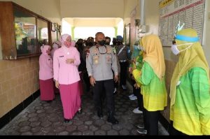 Semarang – jurnalpolisi.id Mendukung program vaksinasi covid-19 untuk anak-anak, Polda Jateng menggelar kegiatan di SD Kemala Bhayangkari 02, Pedurungan Kota Semarang. Kegiatan yang digelar dengan tajuk Vaksinasi Merdeka Anak itu dihadiri Wakapolda Jateng Brigjen Abioso Seno Aji didampingi PJU Polda Jateng dan Kapolrestabes Semarang. Rabu, (5/1/2022). Di lokasi, sekitar 150 anak yang menerima suntikan vaksin Sinovac dosis pertama. Sedangkan di seluruh Jawa Tengah, Vaksinasi Merdeka Anak pada Selasa (5/1) dilakukan secara serentak di 19 Polres di Jajaran Polda Jateng. Masing-masing polres menggelar kegiatan secara jemput bola di TK, SD, dan Klinik polres setempat. Ada pun sasaran vaksinasi adalah anak usia 6-11 tahun dengan jumlah penerima sebanyak 2.022.464 orang. Ditargetkan dalam sehari dilakukan 500-2000 dosis suntikan di setiap polres. Dalam kegiatan vaksinasi anak di Pedurungan itu, Wakapolda juga mengikuti arahan Kapolri yang dilaksanakan secara virtual. Wakapolda menjabarkan beberapa pencapaian terkait penanganan Covid 19 dan Vaksinasi di Jawa Tengah. Menurut Wakapolda, terhitung pada hari Selasa (4/1), jumlah kasus positif di Jateng hanya 84. Kasus aktif terdapat di Karanganyar, Brebes, Kendal, Sukoharjo dan Temanggung. “Secara umum, vaksinasi di Jateng telah mencapai 79,91 persen, melebihi target vaksinasi nasional yang sebesar 70 persen. Pencapaian ini didukung dengan Vaksinasi Aglomerasi Polri di Semarang Raya yang telah mencapai 117,62 persen dan di Solo Raya yang menyentuh angka 140,94 persen,” rinci Wakapolda. Ditambahkan, Berdasar golongan usia, pelaksanaan vaksinasi di Jateng telah diberikan kepada lansia dengan penerima sebanyak 71,82 persen, anak usia 12-17 tahun sebanyak 90,61 persen, anak usia 6-11 tahun sebanyak 32,81 persen, dan terhadap guru sebanyak 102 persen. “Terkait program vaksinasi anak, Polda Jateng siap melaksanakan jemput bola agar target bisa dicapai secara cepat dan maksimal. Polda Jateng akan terus berkoordinasi dengan instansi terkait agar program vaksinasi berjalan lancar dan tepat sasaran,” tegas Brigjen Abioso. (Arif JPN)