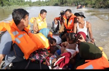 Aceh Timur – jurnalpolisi.id Sejak dilanda musibah banjir Bupati Aceh Timur H. Hasballah Bin H.M Thaib SH, terus turun ke lapangan membantu warga yang terdampak. Seperti yang dilakukan pada Senin (3/1/2021). Bupati turut langsung membantu evakuasi masyarakat yang telah terisolir tepatnya di Gampong Cek Mbon, Kecamatan Peureulak, Aceh Timur. Gampong ini menjadi perhatian Bupati pasalnya sebanyak 360 Kepala Keluarga (KK) terisolasi. Selain mengevakuasi Bupati juga mengantar logistic ke daerah itu. Dengan mengunakan perahu karet miliki BPBD Bupati Bersama rombongan mengunakan jalur sungai untuk mengantar bantuan logistik. Selama dua jam di gampong Cek Mbon Bupati meninjau berbagai titik lokasi terparah dampak banjir. Berdasarkan laporan Keuchik terdapat 4 ibu hamil terpaksa harus dievakuasi lantaran hendak melahirkan. Setelah dibantu warga dan dipastikan ke empat ibu hamil itu sehat, bupati Hasballah langsung mengevakuasi. “Hari ini kita telah melihat langsung warga yang terisolasi. Menjadi perhatian kita disini dimana ada ibu- ibu hamil yang harus dievakuasi. Dan Alhamdulillah semua mereka telah berhasil kita bawa,” ujar Bupati Aceh Timur H Hasballah SH. Bupati mengaku ibu hamil yang telah dievakuasi itu ditempatkan di kamar Diklat milik Pemkab Aceh Timur. Sebab diantara mereka ada yang sudah tiba jadwal melahirkan, sehingga lokasi ini sangat tepat dan tidak jauh dengan rumah sakit Umum Zubir Mahmud Idi.“Alhamdulilah mereka telah kita bantu fasilitasi dengan layak. Mereka juga di pantau langsung oleh tenaga medis disana sehingga jika tiba saat melahirkan langsung bisa segera ditangani dengan cepat,” terang Bupati Rocky. Dalam kesempatan itu, Bupati juga mengapresiasi gampong Cek Mbon yang telah menyediakan fasilitas pengobatan yang memadai untuk masyarakat. Hal ini dilihat dari kesiapan pustu gampong dan seorang Bidan mampu memberi pengobatan yang layak untuk warga. “Ini patut di contoh oleh gampong-gampong lain, sehingga disaat ada orang sakit cepat tertangani sembari menunggu datangnya bantuan lain. Apalagi daerah perdalaman ini perlu dengan serius memberi pelayanan kesehatan kepada masyarakat,” imbuh Bupati yang akrab disapa Rocky ini. Sementara itu Keuchik Cek Mbon M. Jamil mengucap terimakasih atas perhatian Bupati Aceh Timur yang telah merespon cepat membantu sekaligus meninjau kondisi desanya. Menurut M. Jamil banjir dari luapan sungai terus meningkat mengenangi rumah warga sehingga akses penghubung ke desanya lumpuh total. “Kita sudah dikepung oleh banjir semua akses terhenti. Salah satu jalur alternatif kami sekarang ialah sungai ini. Dan jika debit sungai terus meningkat tentu ini akan menjadi kendala besar bagi kami,” akui M. Jamil. Jamil menambahkan saat ini sebanyak 1200 jiwa warga Cek Embon terisolasi. Sejumlah fasilitas umum seperti sekolah jembatan dan rumah juga ikut tergenang, bahkan satu jembatan gantung yang dimanfaatkan masyarakat juga tidak bisa di akses lagi. “Dengan kemampuan yang ada kita terus berupaya membantu warga semaksimal mungkin. Mudah- mudahan banjir ini segera surut sehingga gampong kami bisa diakses kembali,” demikian ucap Keuchik Jamil. Sebelumnya Bupati Aceh Timur di damping Kepala BPBD Aceh Timur Ashadi, SE, MM, dan beberapa Kepala OPD terkait ikut melayat ke rumah salahsatu korban anak meninggal dunia akibtat terseret arus banjir di gampong Berandang Kecamatan Ranto Peureulak. Disana Bupati menyepatkan diri bertemu kedua orang tua korban sekaligus membawa bantuan untuk keluarga korban. Bertolak dari rumah duka, Bupati bersama rombongan langsung menuju ke gampong Cek Mbon kawasan terisolir. Disana selain membawa bantuan, bupati juga membantu evakuasi masyarakat yang tergenang banjir ke tempat yang aman. ( Zai) (Sumber: Prokopim)