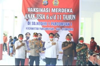 Bupati Samosir dan Forkopikab Hadiri Launching Vaksinasi Bersama Kepolisian untuk mempercepat capaian Vaksin Anak