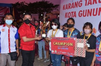 Gunungsitoli – jurnalpolisi.id Kegiatan turnamen Bola Voli Karang Taruna PBVSI Cup Kota Gunungsitoli tahun 2021, secara resmi di tutup setelah babak final dilaksanakan. Terpantau oleh awak media ini, hadir, Bupati Nias, mewakili Walikota Gunungsitoli, Anggota DPR RI Marinus Gea, Anggota DPRD Provsu Penyabar Nakhe, Ketua Persit KCK Cab XLVI Kodim Nias, Ketua Karang Taruna, Ketua Koni, Para Panitia dan undangan lainnya. Sabtu 29/1/22 Terlihat di babak final, Club Bola Voly Persit B, binaan Persit KCK Cab. XLVI Kodim 0213/Nias, raih juara I setelah menang dari Club Xar Hilihao 3 kosong dan sekaligus mendapatkan pemain terbaik. Menejer dari Binaan Club Bola Persit KCK Cab XLVI Kodim Nias, Ny. Melly Martyk Jaya Perangin Angin yang juga Ketua Persit KCK Cab XLVI Kodim Nias mengatakan, dalam rangka turnamen bola voli karang taruna Kota Gunungsitoli, jajarannya telah menurunkan 2 tim Club Putri dan 1 tim Club Putra dan yang masuk di babak final hari ini, tim Club Persit B dan meraih juara I (satu) setelah mengalahkan Club Xar Hilihao 3 (tiga) kosong. “ Seperti yang kita saksikan hari ini, anak-anak dari tim Bola Voli Persit B, raih juara I setelah melawan tiga kosong Club Xar Hilihao.” Ucapnya Lanjutnya. Selama kita disini, awalnya kita sama-sama berlatih dengan mengunakan lapangan Bola Voli yang ada di Makodim Nias untuk mencari potensi anak-anak dalam bidang olahraga Voli, dan hari ini hasilnya sangat memuaskan, meraih juara dan juga kita mendapat pemain terbaik. Untuk hasil pertandingan Club Persit A Juara III dan Club Persit B juara I, saya sangat bangga dengan kekompakan dan kerjasama tim hari ini bisa mendapatkan hasil yang memuaskan.Ujarnya Rusman zend.