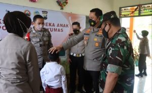 Hari pertama Dinas, Kapolresta Banyumas langsung Pemantauan Vaksinasi Anak Di Kecamatan Kembaran