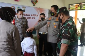Banyumas – jurnalpolisi.id Kapolresta Banyumas Polda Jawa Tengah Kombes Pol Edy Suranta Sitepu, S.I.K., M.H., kunjungi kegiatan vaksinasi anak di wilayah Kecamatan Kembaran, Selasa (11/1). Vaksinasi yang berlangsung di SDN 2 Pliken Kecamatan Kembaran ini dihadiri oleh Kabag Ops Kompol Aldino Agus Anggoro, S.E., S.I.K., Kasat Intelkam Kompol Sulistyo Dwi Cahyono, Kasat Reskrim Kompol Berry., SH., S.I.K., Kasat Lantas Kompol Ari Priyanto, S.I.K., M.I.K., Kasat Binmas Kompol Subeno., S.H., M.H., Kapolsek Kembaran Kompol Sukiyah, S.H., Camat Kembaran, Danramil 06/Kembaran, Kapuskesmas Kembaran 1 dan 2, Kepala Sekolah SDN 2 Pliken, para Guru SDN 2 Pliken dan peserta vaksin anak. Kapolresta Banyumas Kombes Pol Edy Suranta Sitepu, S.I.K., M.H., melalui Kabag Ops Kompol Aldino Agus Anggoro, S.E., S.I.K., mengatakan kegiatan vaksinasi yang diselenggarakan di SDN 2 Pliken ini dalam rangka vaksinasi merdeka yang bertujuan untuk kekebalan tubuh dan percepatan vaksinasi anak usia 6 sampai dengan 11 tahun. Pelaksanaan vaksinasi ini juga sebagai upaya kita untuk bisa memutus mata rantai penyebaran Covid-19. Setelah melalui tahapan pemeriksaan kesehatan dan screening, sebanyak 126 siswa dapat tervaksin jenis sinovac dalam Vaksinasi Anak Merdeka di SDN 2 Pliken. “Dengan harapan, anak anak kita Minggu depan sudah siap sekolah, tambah sehat, sehingga orang tua bisa tenang saat melepas anaknya untuk pergi ke sekolah. Anak anak kita harus sehat dan tidak ada kekhawatiran kita bersama selama Pembelajaran Tatap Muka,” terangnya. Kegiatan dilanjutkan dengan Kapolresta Banyumas beserta peserta vaksin melaksanakan zoom meeting bersama Kapolda Jawa Tengah. (Arif JPN)