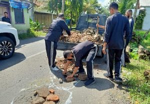 Jalan Berlubang di Desa Muktisari Ditambal Polres Kebumen