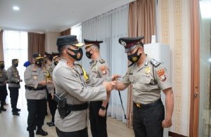 BATAM – jurnalpolisi.id Kapolda Kepri Irjen Pol Dr. Aris Budiman, M.SI., pimpin upacara kenaikan pangkat 618 Personel Polda Kepri dan Polres Jajaran periode 1 Januari 2022, di Ruang Kerja Kapolda Kepri, Jumat (31/12/21). Hadir dalam upacara tersebut Wakapolda Kepri, Irwasda Polda Kepri, Pejabat Utama Polda Kepri dan Personel Polda Kepri (Perwakilan Naik pangkat). Ucap Kabid Humas Polda Kepri Kombes Pol Harry Goldenhardt S., S.IK., M.Si. Jumlah Personel Polda Kepri dan jajaran yang dinaikan pangkat setingkat lebih tinggi berjumlah 618 Personel dengan rincian: 1. AKBP ke Kombes berjumlah 2 Personel (Dirpolairud Polda Kepri Kombes Pol Marudut Liberti Panjaitan, S.I.K., M.H., dan Kapolresta Barelang Polda Kepri Kombes Pol Nugroho Tri Nuryanto, S.H., S.I.K., M.H.)2. Kompol ke AKBP berjumlah 9 Personel,3. AKP ke Kompol berjumlah 38 Personel.4. Iptu ke AKP berjumlah 74 Personel.5. Ipda ke Iptu berjumlah 53 Personel.6. Aipda ke Aiptu berjumlah 20 Personel7. Bripka ke Aipda berjumlah 124 Personel.8. Brigadir ke Bripka berjumlah 80 Personel.9. Briptu ke Brigadir berjumlah 108 Personel.10. Bripda ke Briptu berjumlah 58 Personel.11. Bharatu ke Bharaka berjumlah 45 Personel.12. Bharada ke Bharatu berjumlah 7 Personel. Kabid Humas Polda Kepri Kombes Pol Harry Goldenhardt S., S.IK., M.Si., mengucapkan selamat dan sukses kepada seluruh Personel yang pada hari ini dilantik dengan pangkat setingkat lebih tinggi, dan dapat meningkatkan kualitas kinerja sesuai dengan kapasitas pangkat yang di emban. “Dengan harapan menjadi Insan Bhayangkara yang bernilai dan dapat bermanfaat bagi sesama di dalam rangka memberikan perlindungan, pengayoman dan pelayanan kepada masyarakat,” Tutup Kabid Humas Polda Kepri Kombes Pol Harry Goldenhardt S., S.IK., M.Si. (Hms/Sahril)
