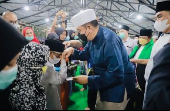 Pekanbaru – jurnalpolisi.id Kapolda Riau Irjen Muhammad Iqbal Sik MH menghadiri doa bersama yang digelar pengurus wilayah Nahdlatul Ulama provinsi Riau bertempat di RA Kopi Aren Palas Rumbai pada Minggu malam, (2/1/2022). Serangkaian kegiatan mulai yasinan, tahtim, tahlilan kemudian dilanjutkan doa dan penyerahan bantuan secara simbolis bagi 500 anak yatim. Turut hadir pada acara tersebut ketua MUI provinsi Riau Prof DR KH Ilyas Husti MA, ketua Tanfidzah PWNU Riau Tengku H Rusli Ahmad SE, Asintel Kajati Raharjo Budi Kisnanto SH MH, para PJU Polda, Kapolresta Pekanbaru, Dekan dan pimpinan masjid UIN DR Gazali, ketua yayasan Ponpes Aswaja Rohil KH Abdul Muntolib dan tokoh masyarakat. Ketua Tanfidzah PWNU Riau Tengku Rusli Ahmad dalam sekapur sirihnya mengatakan acara yang digelarnya sebagai dukungan doa bagi Kapolda Riau Irjen Muhammad Iqbal dalam menjalankan tugas di Riau. “Kami mengucapkan terimakasih atas kedatangan bapak Kapolda Riau dalam Acara Yasinan, Tahtim, Tahlil dan doa pengurus wilayah Nahdatul Ulama provinsi Riau bersama Kyai dan 500 anak yatim,” ujar Rusli. “Kami mendatangkan 6 pimpinan agama untuk mendoakan bapak Kapolda supaya sehat dan sukses selalu dalam menjalankan tugas, dan saya berpesan kepada kita semua agar jangan pernah menyakiti orang tua dan anak yatim karena doa mereka sangat berkah bagi kita semua,” sambungnya. Sementara Kapolda Irjen Iqbal dalam sambutannya menyampaikan terimakasihnya kepada penyelenggara dan mengajak semua untuk senantiasa berikhtiar dan berdoa. “Marilah kita banyak bersyukur kepada Allah SWT karena ridhonyalah kita diberi nikmat dan saya mengucapkan terimakasih kepada seluruh pengurus yang telah melaksanakan acara Yasinan , Tahtim, Tahlil dan doa pengurus wilayah Nahdatul Ulama Provinsi Riau Bersama Kyai Dan 500 Anak Yatim diperuntukan kepada saya,” tutur Iqbal. “Saya mohon didoakan terus sehingga saya dapat diberi kemudahan dalam menjalan tugas dan diterima baik oleh masyarakat provinsi Riau, karena tim yang solid adalah elemen masyarakat,” sambungnya menutup sambutan. (Anto D)