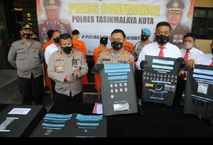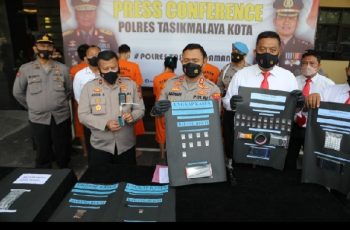 Tasikmaya – jurnalpolisi.id Polres Tasikmalaya Kota melaksanakan Press Conference pengungkapan kasus Narkoba selama bulan Januari 2022 di Mapolres,Senin pagi (31/01/22). Kapolres Tasikmalaya Kota AKBP Aszhari Kurniawan mengatakan bahwa Satuan Reserse Narkoba Polres Tasikmalaya Kota selama bulan Januari 2002 telah mengamankan 6 tersangka yang terdiri dari 4 pengedar sabu, satu kurir sabu dan satu pengguna obat Psikotropika dengan barang bukti Sabu 8,71 gram, 20,03 gram tembakau sintetis, 36 butir obat zypras, 15 butir alphazolam, dan 64 butir obat riklona. “Telah diamankan 6 pelaku dan salah satunya perempuan,terdiri dari pengedar, kurir dan pemakai,” ungkapnya “Modus para pelaku mengedarkan dengan sistem tempel sehingga tidak saling mengenal atau sistem jaringan terputus,” tambahnya Kapolres juga menghimbau kepada semua pihak untuk bekerjasama dalam melakukan pencegahan dan penanggulangan narkoba di Kota Tasikmalaya.”Kami menghimbau kepada semua komponen masyarakat juga dunia pendidikan formal atau informal untuk bersama sama melakukan pencegahan dengan memberikan informas bahaya penyalahgunaan narkoba kepada generasi muda, anak didik dan anak kita semua sehingga bisa terhindar dari bahaya narkoba,” paparnya. Sementara itu para tersangka penyalahgunaan narkoba dikenakan pasal 112 ayat 1 dan 2, junto pasal 124 ayat 1 dan 2, junto pasal 127 pasal 1 huruf a Undang-Undang RI Nomor 35 tahun 2009. “Para Tersangka terancam hukuman diatas 5 tahun kurungan penjara,” tegasnya. (AM/hms)