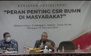 Depok – jurnalpolisi.id Corporate Sosial Responsbility (CSR) adalah bentuk tanggung jawab sosial Badan Usaha Milik Negara (BUMN) yang memiliki fungsi sebagai perusahaan yang berkomitmen meningkatkan nilai ekonomi, serta berkontribusi terhadap lingkungan dan sosial kemasyarakatan. Hal itu diungkapkan oleh Anggota Komisi VI DPR RI Mahfudz Abdurrahman dalam acara sosialisasi “Peran Penting CSR BUMN di Masyarakat” yang bertempat di Wisma Hijau, Cimanggis, Depok, Minggu (16/012022). Mahfudz berharap, sosialisasi yang digelar ini dapat mendorong pemanfaatan tanggung jawab sosial perusahaan secara optimal, sehingga dapat memulihkan ekonomi di masa pandemi seperti ini. lanjut Mahfudz, untuk itu CSR perlu menyentuh sektor UMKM, karena sektor tersebut adalah salah satu sektor yang banyak dijalankan oleh masyarakat. “CSR perlu membina UMKM dengan baik sebagai mitra binaannya, agar masyarakat mendapatkan banyak manfaat,” tegasnya. Sementara, Eman Suherman selaku Akademisi menyampaikan bahwa, penyelenggaraan sosialisasi seperti ini mempunyai arti yang sangat penting pada saat di tengah situasi pandemi yang masih berlangsung. Menurut Eman, sosialisasi ini dapat mengedukasi Masyarakat terkait peran CSR itu sendiri bagi masyarakat, khususnya masyarakat di Kota Depok. Eman juga mengungkapkan, sesuai dengan amanat UU No. 19 tahun 2003, BUMN memiliki kewajiban untuk menyisihkan sebagian laba usahanya. “Jadi, sosialisasi ini bertujuan agar masyarakat dapat memahami dengan utuh apa itu Program CSR,” ungkapnya. (Maedi)