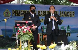 Samosir – jurnalpolisi.id Bupati dan Wakil Bupati Samosir Vandiko T. Gultom, ST dan Drs. Martua Sitanggang, MM menggelar “Open House” di Rumah Dinas Bupati Samosir, Pangururan, Jumat (7/1). Turut hadir Unsur Forkopimda, Pimpinan Lintas Sektoral, Sekda, Anggota DPRD, Pimpinan Perangkat Daerah, Ketua TP PKK, Ketua DWP, Camat, Kepala Desa, FKTM, Tokoh Agama, LSM dan Insan Pers. Acara “Open House” diawali dengan kebaktian singkat yang dibawakan Praeses HKBP Distrik VII Samosir Pdt. Rein Justin Gultom, S.Th, MA dengan tema “Sehati, Sepikir dalam Satu Kasih, Satu Jiwa dan Satu Tujuan”. Dalam khotbahnya Praeses menekankan bahwa untuk mempercepat perubahan kearah yang lebih baik perlu adanya satu derap langkah oleh seluruh stakeholder demi pembangunan di Kabupaten Samosir. Mengawali sambutannya, Bupati Samosir mengucapkan selamat tahun baru bagi hadirin yang hadir dan seluruh masyarakat Kabupaten Samosir. Menurutnya, tahun baru ini hendaknya dijadikan momentum untuk bertekad bangkit kembali membangun diri dan masyarakat dengan nilai-nilai moral yang lebih baik, dan terus berupaya melakukan perubahan dalam berbagai aspek. Bupati juga mengajak agar momentum tahun baru ini sebagai ajang evaluasi perjalanan hidup dan menghindari kebiasaan-kebiasaan lama yang tidak bermanfaat. Secara khusus, beliau mengajak seluruh masyarakat untuk bisa sama-sama mendukung seluruh program pemerintah dengan semangat perubahan untuk kesehjateraan masyarakat yang lebih baik sesuai dengan visi Kabupaten Samosir. “Harapan kita bersama, melalui acara ini kita mendapatkan semangat baru yang penuh suka cita demi kesehjateraan masyarakat Samosir yang kita cintai ini” tutup Bupati Samosir. Wakil Bupati Samosir dalam sambutannya menjelaskan bahwa pentingnya terus bergandengan tangan dalam membangun Kabupaten Samosir. Termasuk dalam menjalankan roda pemerintahan yang penuh dengan segala dinamika, beliau berkomitmen akan terus sehati dan sepemikiran dengan Bupati Samosir untuk membangun Kabupaten Samosir. Seyogianya, seluruh lapisan masyarakat baik tua dan muda harus saling mendukung pembangunan di Kabupaten Samosir demi terwujudnya masyarakat Samosir yang sejahtera. Wabup juga mengingatkan kepada seluruh ASN di Kabupaten Samosir untuk menunjukkan prestasi dan loyalitas, karena kesuksesan kepala daerah sebagian besar adalah dengan dukungan perangkat daerah. Mewakili Forkopimda, Wakil Ketua DPRD Kabupaten Samosir Pantas Maroha Sinaga, mengharapkan kerja sama dari seluruh pihak dan terjalinnya sinergitas antara eksekutif, legislatif dan yudikatif untuk pembangunan yang merata di Kabupaten Samosir. Dengan segala keterbatasan anggaran, beliau juga mengajak agar seluruh unsur forkopimda bisa membangun sinergitas dengan pemerintah atasan baik di provinsi maupun pusat, demi percepatan pembangunan di Kabupaten Samosir. (D. Uli. N)