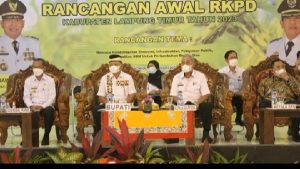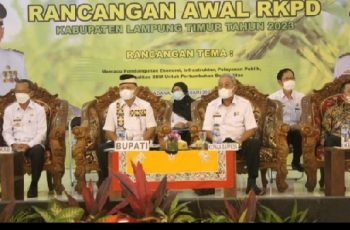Lampung Timur – jurnalpolisi.id Bupati Lampung Timur M. Dawam Rahardjo Memeberi Sambutan Sekaligus Membuka Acara Forum Konsultasi Publik Rancangan Awal RKPD Kabupaten Lampung Timur Tahun 2023 di Gedung Pusiban Kabupaten Lampung Timur, Kamis (20/1/2022). Selain M. Dawam Rahrdjo hadir pula Sekda Moch. Jusuf, Para Staf Ahli, Asisten, Kepala Inspektorat Lampung Timur Ahmad Zainudin, Sekertaris Dewan Nur Ali Syarif, Para Kepala Badan, Kepala Dinas, Kepala Bagian serta Para Camat. Dalam acara yang mengusung tema “Memacu Pembangunan Ekonomi, Infrastruktur, Pelayanan Publik dan Kualitas SDM Untuk Pertumbuhan Berkualitas” tersebut M. Dawam Rahardjo berharap Perangkat Daerah dan RKPD Tahun 2023 dapat berpedoman pada visi-misi serta mempunyai inovasi. “Saya berharap dalam menyusun Renja Perangkat Daerah dan RKPD Tahun 2023 yang akan datang tetap berpedoman pada visi-misi dan agenda kerja serta tetap memperhatikan pendekatan teknokratik, partisipasif dalam upaya penyesuaian dan penyelarasan program kerja dengan berbagai kebijakan Pemerintah Pusat dan Pemerintah Provinsi Lampung serta penyesuaian perkembangan yang terjadi dan aspirasi dari masyarakat,” papar M. Dawam Rahardjo. Selanjutnya M. Dawam Rahardjo mengajak para Kepala OPD untuk dapat bekerja keras dalam menyerap aspirasi dan kebutuhan masyarakat serta cepat tanggap dalam memberikan solusi. “Sebagaimana kita ketahui dan rasakan bersama bahwa saat ini masyarakat Lampung Timur dan hampir seluruh masyarakat di dunia sedang berada pada masa-masa sulit, oleh karna itu mari kita bersama-sama meningkatkan kembali pelayanan masyarakat dalam menyerap aspirasi dan kebutuhan masyarakat sehingga Lampung Timur segera keluar dari segala kesulitan akibat pandemi dan segera bangkit untuk membangun Kabupaten Lampung Timur menuju Rakyat Lampung Timur Berjaya,” sambungnya. Untuk diketahui usai acara tersebut M. Dawam Rahardjo melakukan sidak ke Alfamart dan Indomart untuk menindaklanjuti terkait dengan harga minyak goreng. (Maedi)