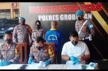 Grobogan Jateng – jurnalpolisi.id Seorang pria yang mengaku wartawan diamankan Satreskrim Polres Grobogan. Ia diamankan karena melakukan tindak pemerasan pada salah satu perangkat desa di Kecamatan Tegowanu. Adapun pria tersebut berinisial MK (48), warga Kecamatan Tegowanu kelurahan Gaji, Pelaku memeras korbannya, Rojikan (44). Bahkan korban mengalami kerugian hingga mencapai puluhan juta. Kapolres Grobogan AKBP Benny Setyowadi mengungkapkan, dugaan pemerasan itu dilakukan terkait dengan pelaksanaan program pendaftaran tanah sistematis lengkap (PTSL) tahun 2018. Di mana, pelaku sempat mengancam melaporkan korban ke Polda Jateng terkait pelaksanaan program PTSL yang sudah selesai dilaksanakan tersebut. Apabila menghendaki tidak dilaporkan, pelaku meminta korban untuk menyerahkan uang sebesar Rp. 75 juta. Kemudian secara berturut-turut korban menyerahkan uang kepada pelaku. Yakni, pada hari sabtu, (25/12/2021) sebesar Rp 20 juta. Sehari berikutnya, korban menyerahkan uang Rp. 10 juta,” sambung Kasat Reskrim Polres Grobogan AKP Andryansyah Rithas Hasibuan saat konferensi pers, Jumat (31/12/2021). Selanjutnya, pada hari selasa (28/12/2021) pelaku meminta lagi kekurangan dari total permintaan Rp. 75 juta. Tetapi, korban hanya sanggup memberikan uang Rp. 20 juta yang didapat dari hasil menggadaikan sawahnya. Kasat Reskrim menjelaskan, pada hari Selasa (28/12/2021), anggotanya dan Satgas Saber Pungli Grobogan berkoordinasi dengan korban yang akan menyerahkan kekuangan uang kepada pelaku di rumahnya. Kemudian, sekitar pukul 19.00 WIB, anggota mengamankan pelaku saat menerima uang Rp. 20 juta dari korban. “Selanjutnya, pelaku kita bawa ke Mapolres Grobogan untuk dimintai keterangan lebih lanjut,” jelasnya. Bersama pelaku, pihaknya juga mengamankan sejumlah barang bukti. Antara lain, kartu indentitas wartawan, dan surat tugas. Kemudian, ada dua buah HP dan uang tunai Rp. 20 juta. “Masih kita dalami apakah pelaku ini merupakan wartawan atau tidak. Terkait kasus ini, pelaku akan kita jerat Pasal 368 KUHP dengan ancaman hukuman selama-lamanya sembilan tahun,” pungkasnya. (Pewarta : Arif JPN)