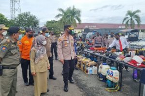 Pulang Pisau – jurnalpolisi.id Polres Pulang Pisau, Polda Kalteng, menggelar apel Pengecekan Personel dan Sarpras kesiapan penanggulangan bencana di wilayah Kabupaten Pulang Pisau di halaman Mapolres Pulang Pisau, Selasa (18/01/2022) Pagi. Dalam Kegiatan apel kesiapan tersebut di hadiri oleh Koramil Pulang Pisau, Sat Pol PP Kab Pulang Pisau, Dinas Kesehatan, Dinas Sosial, Dinas Perhubungan, BPBD dan Tagana. Apel dipimpin langsung oleh Kapolda Kalteng Irjen Pol. Drs. Nanang Avianto, M.Si., Secara Virtual dan di ikuti Oleh Polres Jajaran Polda Kalteng. Kapolres Pulang Pisau AKBP. Kurniawan Hartono, S.I.K. mengatakan, apel gelar pasukan Pengecekan Personel dan Sarpras kesiapan penanggulangan bencana ini digelar untuk mengetahui kesiapan dalam menghadapi kemungkinan terjadinya bencana alam, dan Upaya kita Bersama agar dalam menghadapi Bencana sudah siap. ” Baik dari kesiapan personel, sarana dan prasarana serta dukungan logistik lainnya, khususnya yang berhubungan dengan penanganan bencana alam di wilayah Kabupaten Pulang Pisau,” jelas Kapolres Selesai apel kesiapan menghadapi bencana alam, Kapolres Bersama Forkompimda langsung melakukan pemeriksaan kesiapan personel maupun kendaraan dan alat pendukung lainnya dalam menghadapi bencana Alam. ” Agar anggota tetap siap saat dibutuhkan kapan saja dan merawat kendaraan dan perlengkapan lainnya agar tetap dalam keadaan baik, sehingga pada saat dibutuhkan siap digunakan” terang Kapolres.( Dicky Ferdiansyah)