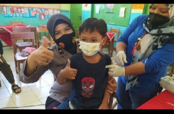 Purbalingga – jurnalpolisi.id Ada hal berbeda dalam pelaksanaan vaksinasi anak yang diselenggarakan pihak kepolisian di sejumlah sekolah wilayah Kecamatan Bojongsari, Kabupaten Purbalingga. Polwan dari Polsek Bojongsari Aipda Desi Mutiara Putri tampak mendampingi siswa saat pelaksanaan vaksinasi. Seperti saat vaksinasi siswa di MI Maarif NU 02 Kajongan. Tidak hanya melakukan pendampingan, namun Polwan dari Polsek Bojongsari tampak turut memberikan pemahaman terkait vaksinasi. Tujuannya agar siswa paham pentingnya vaksinasi. Selain itu, ikut membujuk siswa yang takut disuntik agar tetap mau mengikuti vaksinasi. Bahkan mengajak siswa duduk dipangkuan untuk mengurangi ketakutan saat hendak disuntik vaksin. Kapolsek Bojongsari AKP I Made Nergo mengatakan bahwa dalam rangka akselerasi vaksinasi anak, pihak kepolisian di tingkat polsek turut menggelar kegiatan vaksinasi di sekolah-sekolah. Termasuk yang dilakukan Polsek Bojongsari. “Dalam vaksinasi di sekolah, kami libatkan Polwan untuk melakukan pendampingan terhadap anak atau siswa yang akan divaksin,” kata kapolsek, Sabtu (8/1/2022). Dijelaskan bahwa kehadiran polwan dilakukan untuk membantu pelaksanaan vaksinasi. Polwan melakukan pendampingan, memberikan pemahaman dan mencegah siswa takut disuntik. “Dari pelaksanaan di sejumlah sekolah para siswa yang merupakan anak 6-11 tahun tampak antusias mengikuti vaksinasi,” jelasnya. Dari data yang diperoleh pelaksanaan vaksinasi di MI Maarif NU 02 Kajongan total ada 205 anak yang divaksin. Mereka mendapatkan vaksin jenis Sinovac untuk dosis pertama. ( Sambudi JPN)
