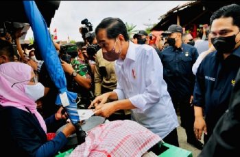 Muara Enim – jurnalpolisi.id Presiden Joko Widodo menyerahkan bantuan tunai bagi para pedagang di Pasar Baru Tanjung Enim, Kabupaten Muara Enim, Provinsi Sumatera Selatan, pada Senin, 24 Januari 2022. Bantuan sebesar Rp1,2 juta per orang tersebut diberikan untuk menambah modal para pedagang yang terdampak pandemi Covid-19. Santi, salah satu pedagang yang menerima bantuan tersebut, mengaku sangat terbantu dengan adanya suntikan modal tersebut. Menurutnya, kondisi pandemi Covid-19 telah menyulitkan dirinya dan teman-teman pedagang lainnya. “Ini digunakan buat modal lagi sebab di tengah pandemi Covid ini modal kami sudah tidak ada. Untung ada Pak Jokowi,” ujar Santi. Saat menghampiri Santi, Presiden Jokowi sempat menanyakan harga-harga sembako di Pasar Baru Tanjung Enim. Tak hanya itu, Presiden juga menyempatkan membeli cabai sebanyak dua kilogram. “Beli cabai dua kilo, aku dikasih uang Rp200 ribu sama santunan uang Rp1,2 juta. Aku terima kasih sama Pak Jokowi,” imbuhnya. Fitri, pedagang tempe yang juga mendapatkan bantuan, juga mengucapkan terima kasih atas bantuan yang telah diberikan. Baginya, uang tersebut akan dipakai sebagai tambahan modal usaha. “Buat Bapak Joko Widodo terima kasih sudah langsung datang ke sini untuk membantu masyarakat untuk menambah modalnya. Terima kasih Bapak sudah turun langsung ke sini. Tidak ada yang bisa kami ucapkan selain terima kasih,” ujar Fitri. Turut mendampingi Presiden dalam kegiatan tersebut yaitu Menteri Energi dan Sumber Daya Mineral Arifin Tasrif, Menteri Badan Usaha Milik Negara Erick Thohir, Menteri Investasi/Kepala BKPM Bahlil Lahadalia, Sekretaris Kabinet Pramono Anung, Gubernur Sumatera Selatan Herman Deru, dan Pj. Bupati Muara Enim Nasrun Umar. (El Roy)Sumber: Biro Pers, Media, dan Informasi Sekretariat Presiden Website: https://www.presidenri.go.idYouTube: Sekretariat Presiden