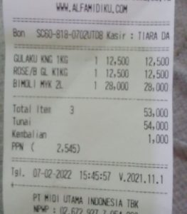 Dan saat menunjukan Bukti Transaksi tersebut Tidak adanya Nama Kasir serta no telepon untuk mengkorfirmasi Hal tersebut.