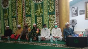 Kotawaringin Timur – jurnalpolisi.id Babinsa Koramil 1015-09/Baamang Serka Iskandar menghadiri peringatan Isra’ Mi’raj Nabi Muhammad SAW 1443 H/2022. Peringatan yang dilaksanakan di Masjid Nurul Anwar Jln Warter Condrat RT 043 RW 007 Kel. Baamang Tengah, dengan menghadirkan penceramah Habib Mustafa Bin Abdullah AL Mutohar dari Samarinda Kalimantan Timur. Jum’at Malam (25/2). Peringatan Isra’ Mi’raj Nabi Muhammad SAW digelar secara sederhana diikuti oleh Para Habaib, A’lim Ulama, Babinsa Koramil 1015-09/Baamang, Anggota Polsek Baamang, Insan Pers dan Warga Sekitarnya dengan Tema dari Acara Peringatan Isra’ Mi’raj Nabi Muhammad SAW 1443 H adalah ” SESUNGGUHNYA MI’RAJ NYA SEORANG MUKMIN IALAH MELAKSANAKAN SHALATNYA”. Babinsa Koramil 1015-09/Baamang Serka Iskandar mengharapkan agar semua pegawai mengikuti kegiatan ini dapat mengambil hikhmah apa yang sudah disampaikan oleh Ustad, dan menjadi penyemangat spirit isra’ mi’raj nabi Muhammad SAW. “Kita banyak melihat dan mendengar bahwa peringatan Isra’ Mi’raj Nabi Muhammad SAW, dilakukan diberbagai tempat dan kalangan. Tentunya sebagai umat nabi Muhammad SAW kita menginginkan syafaatnya nanti di yaumul hisab, ” ujar Babinsa Koramil 1015-09/Baamang Serka Iskandar. Secara Terpisah Danramil 1015-09/Baamang Kapten Inf Wiranto menuturkan “Mari kita ikuti Isra’ Mi’raj ini dengan baik, sehingga kita akan mendapatkan ilmu baru pada mlam ini tentang Islam,” tuturnya. Selain itu, Danramil 1015-09/Baamang Kapten Inf Wiranto menyampaikan bahwa pandemi Covid-19 sampai saat ini belum berakhir” lakukan kegiatan seperti biasanya dengan tetap melaksanakan prokes yang ketat terutama memakai masker. Kita berikhtiar dan berdo’a malam ini agar pandemi ini cepat berakhir,” harap Danramil 1015-09/Baamang Kapten Inf Wiranto. (AP. 86)