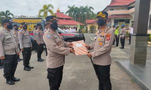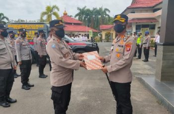 Pulang Pisau – jurnalpolisi.id Polres Pulang Pisau, Polda Kalteng, Usai memimpin pelaksanaan apel pagi Kapolres Pulang Pisau AKBP Kurniawan Hartono, S.I.K.menyerahkan penggunaan mobil operasional penyuluhan Binmas di peruntukan menunjang kinerja Bhabinkamtibmas Food Estate di lapangan yang diterima oleh Kasat Binmas Polres Pulang Pisau Iptu Ujang Kustarman di Halaman Mako Polres Pulang Pisau. Senin (21/02/2022) Pagi. Kapolres mengingatkan pentingnya perawatan sebaik-baiknya. Ia berpesan agar seluruh anggota memberikan pelayanan yang terbaik bagi masyarakat serta meminta peran serta masyarakat dalam mengawasi kinerja anggotanya.”Polisi harus memberikan pelayanan kepada masyarakat bukan untuk dilayani. Saya juga mengharapkan pada masyarakat untuk bisa mengawasi anggota polri di lapangan,” tegasnya. Mobil dinas yang akan di pergunakan untuk melaksanakan penyuluhan dan pembinaan masyarakat yang sangat mendukung operasional Bhabinkamtibmas Food Estate untuk melakukan tugas-tugas pokok secara rutin di lapangan karena mobil tersebut sudah di modifikasi dan didalamnya dilengkapi dengan peralatan seperti meja pelayanan, alat Multimedia, Sound System, TV LCD, DVD Player, Alkom Operation digital, LCD Proyektor, Scren Proyektor dan Genset. “Kendaraan dinas ini hanya digunakan untuk kepentingan dinas. Rawatlah kendaraan ini seperti merawat kendaraan milik sendiri,” tutup Kapolres. ( Dicky Ferdiansyah)
