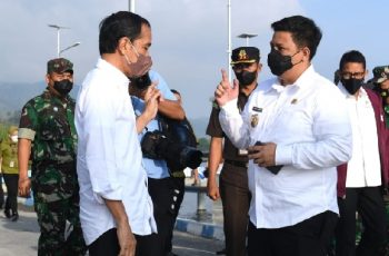 Samosir – Jurnal Polisi id Bupati Samosir Vandiko T Gultom mengahadap Presiden RI Joko Widodo di Hotel Samosir Cottage Kecamatan Simanindo Kabupaten Samosir tempat Presiden menginap. Pertemuan di pagi hari, Kamis (3/2) dilakukan sebelum Presiden meninggalkan Kabupaten Samosir untuk melanjutkan Tugas Negara. Dalam pertemuan tersebut, Bupati Samosir menyampaikan beberapa usulan pembangunan dengan pembiayaan Dana Pusat antara lain;-Pembangunan Rumah adat 5 puak perwujutan samosir titik nol perdapan Batak,-Pembangunan Sarana air bersih,-Pembangunan jalan 45 Desa Wisata,-Peningkatan Daerah Irigasi menjadi Irigasi Nasional dan Pembangunannya,-Pembangunan Water Front City Nainggolan dan Onanrunggu,-Lanjutan pembangunan penataan kampung ulos Hutaraja,-Pembangunan sarana dan prasarana destinasi Desa wisata.-Pembangunan pertanian terpadu. Bupati Samosir mengucapkan terimakasih atas kunjungan kerja Presiden Jokowi di Kabupaten Samosir, Bupati berharap kepada Presiden Jokowi segala usulan yang telah disampaikan dapat segera terealisasi, guna mendukung wisata Samosir sebagai salah satu Kawasan Destinasi Pariwisata Super Prioritas (DPSP) dan meningkatkan kesejahteraan masyarakat Samosir. Rombongan bertolak dari Hotel menuju Pelabuhan Ambarita, nampak terlihat sebelum Pak Presiden memasuki Kapal penyeberangan, Bupati Samosir berbincang serius dengan Pak Joko Widodo untuk meyakinkan usulan-usulan pembangunan di Kabupaten Samosir. ( D. Uli . N )